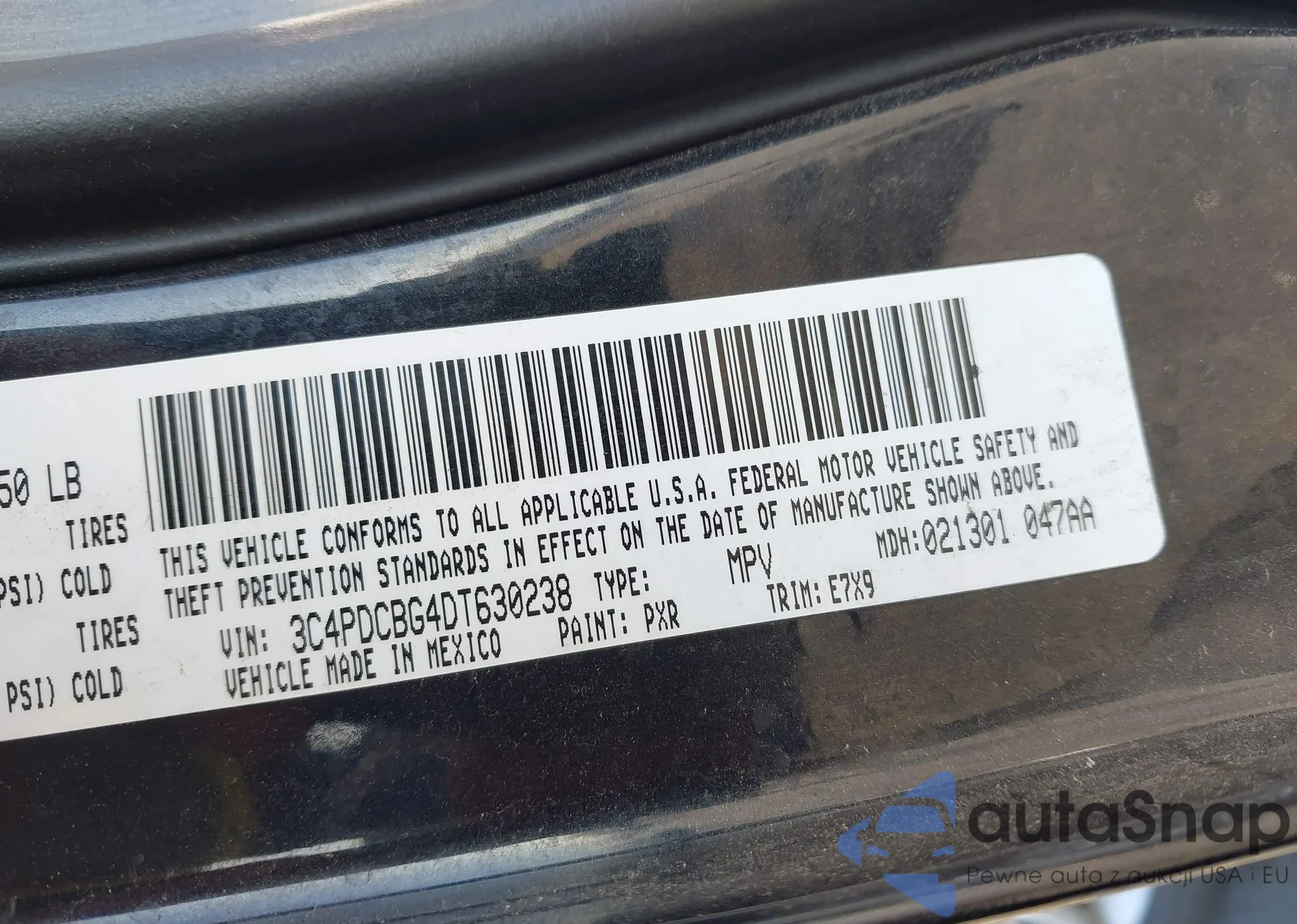 LOT: 43805275 VIN: 3C4PDCBG4DT630238