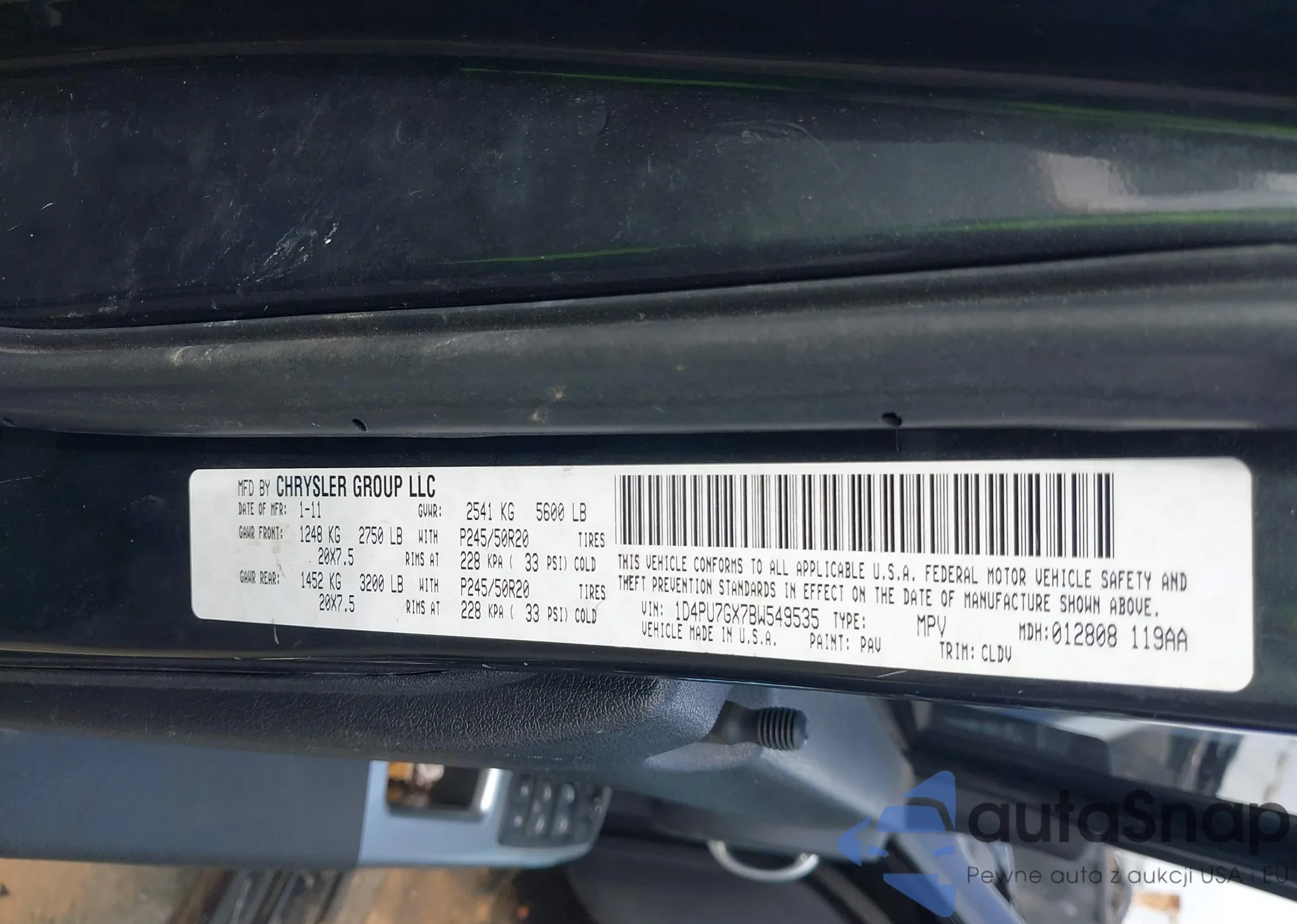 • VIN 1D4PU7GX7BW549535