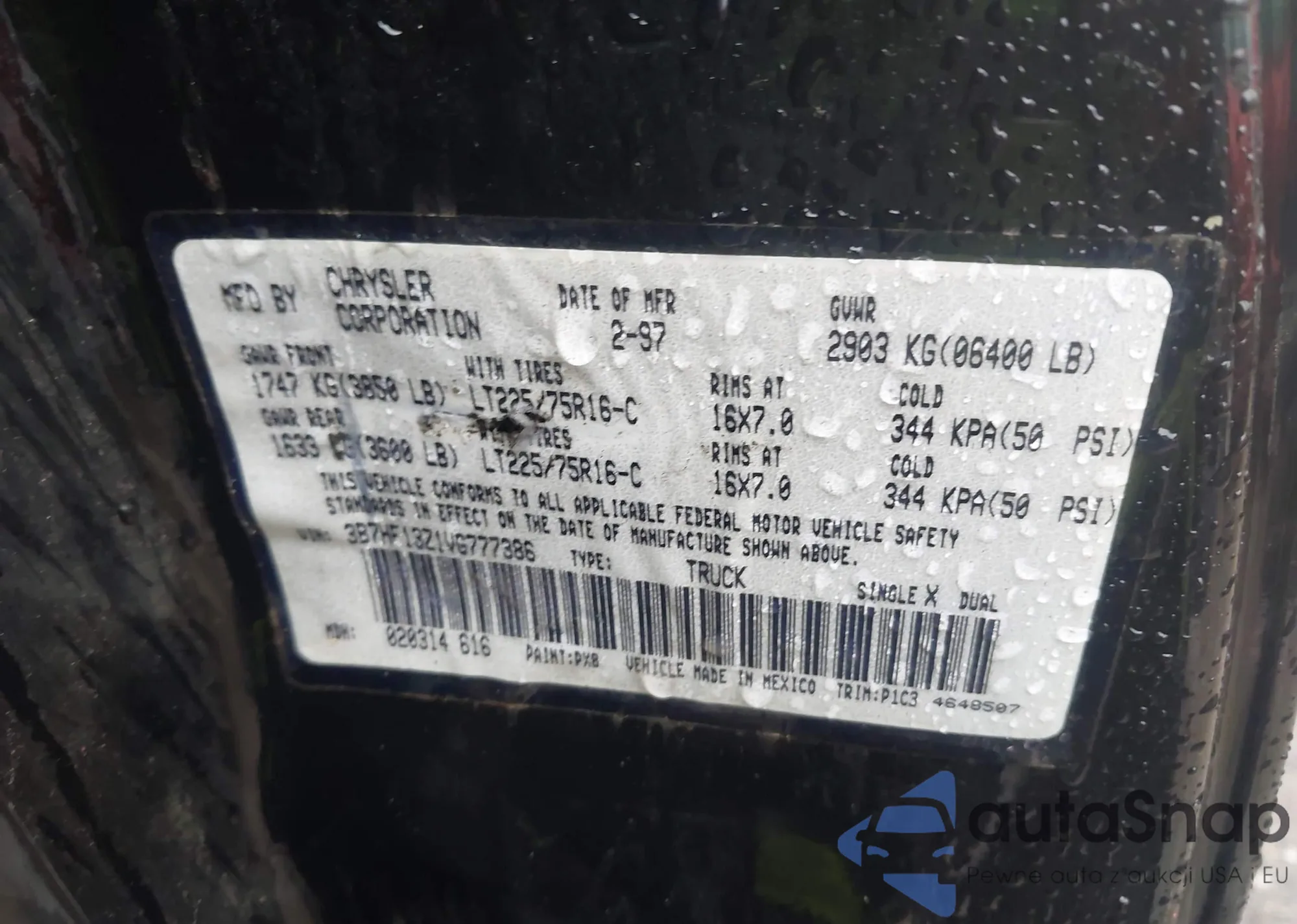 • VIN 3B7HF13Z1VG777386