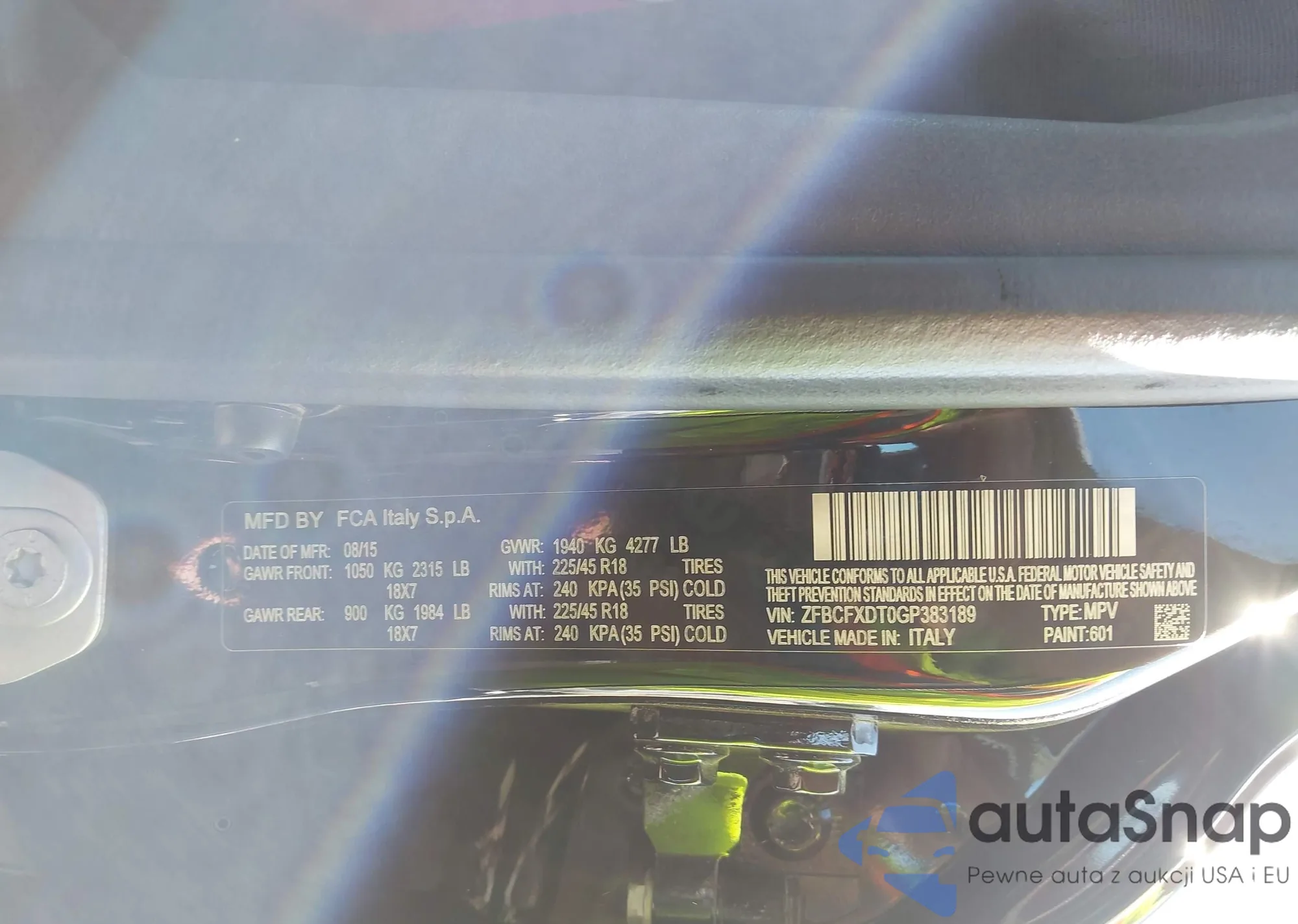 LOT: 43308394 VIN: ZFBCFXDT0GP383189