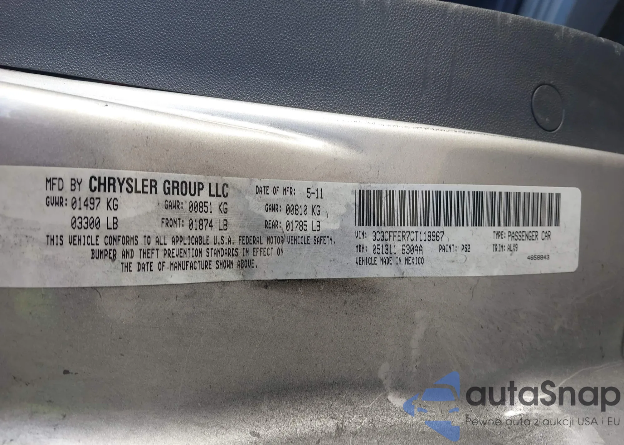 • VIN 3C3CFFER7CT118967