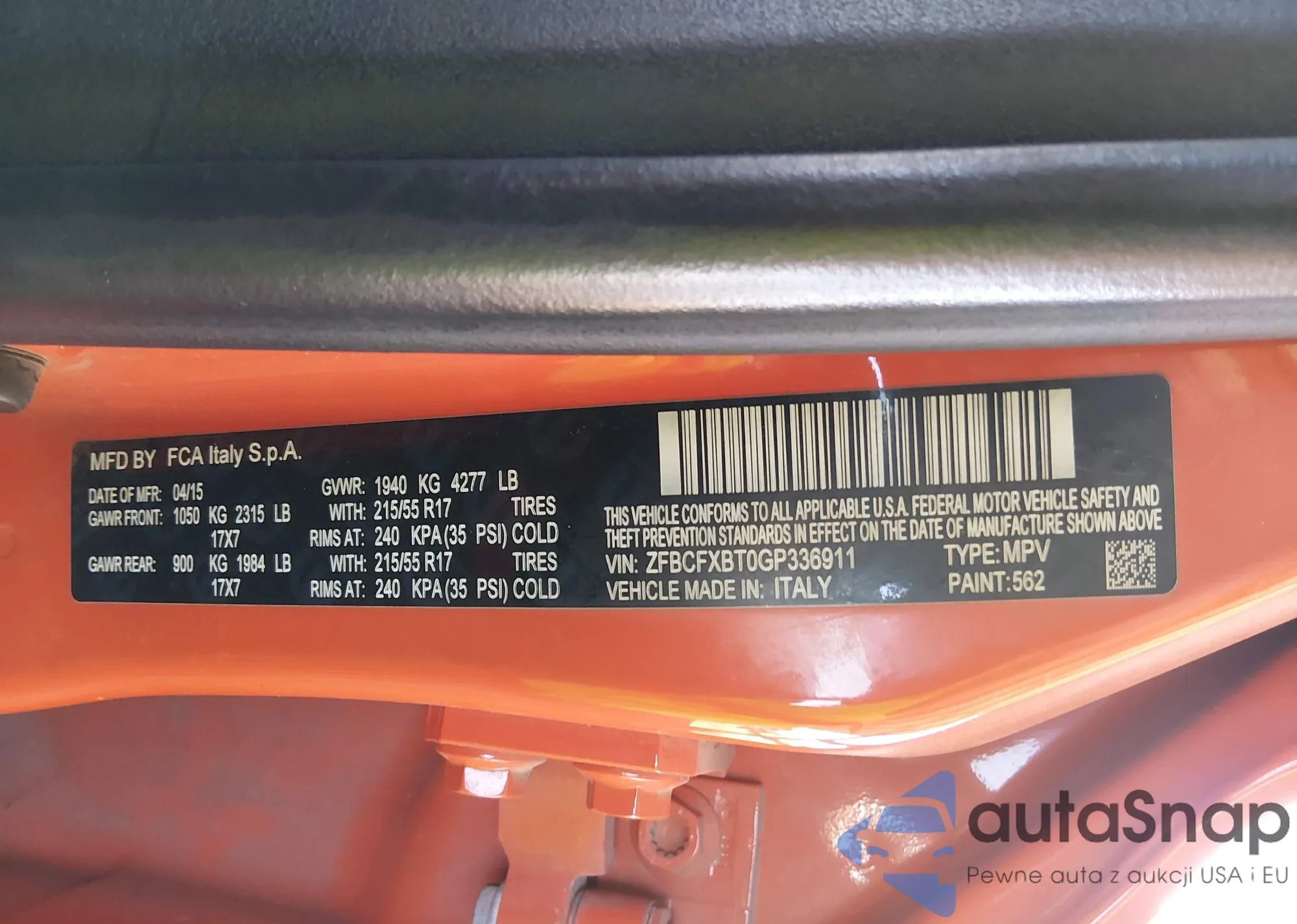 • VIN ZFBCFXBT0GP336911