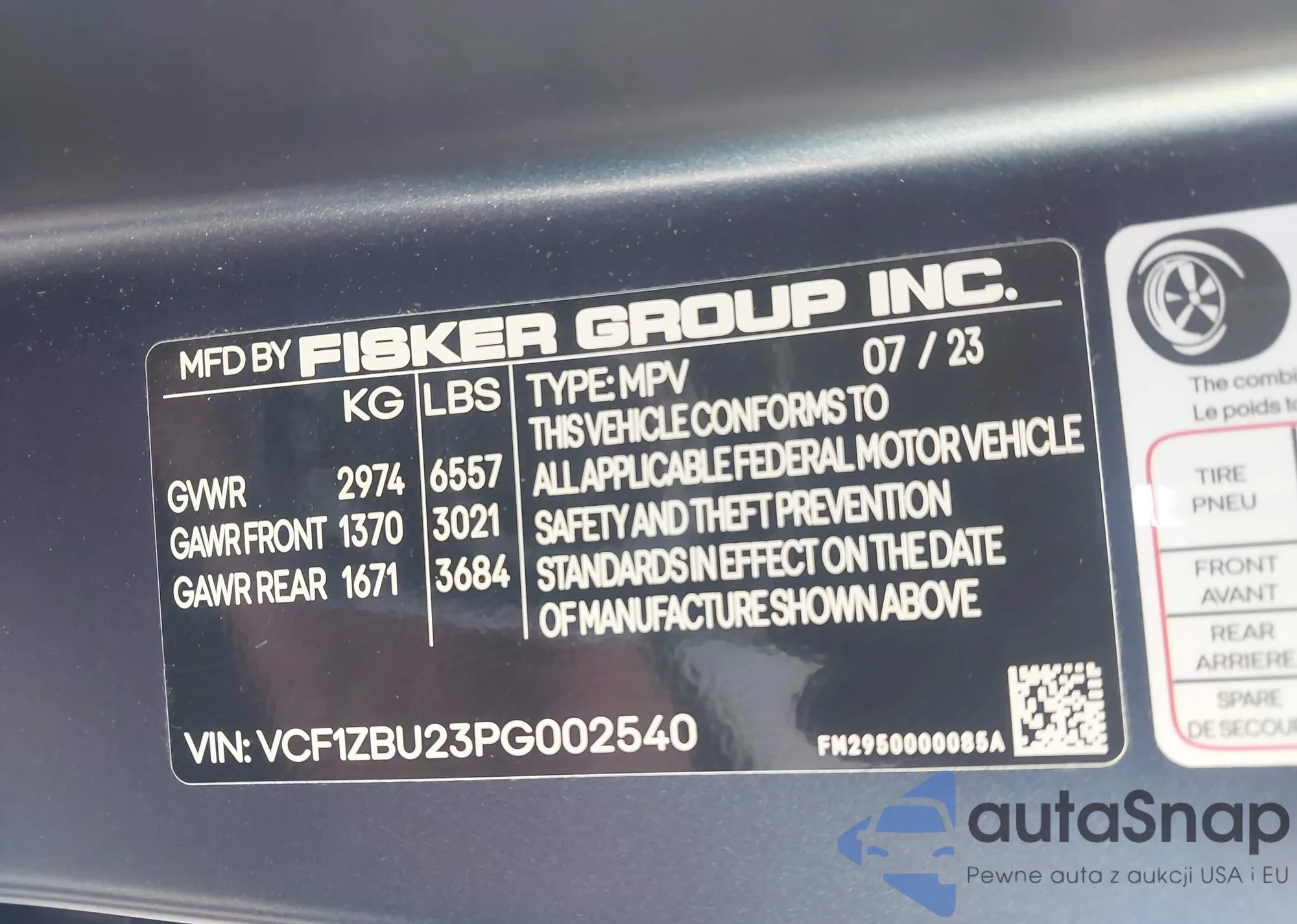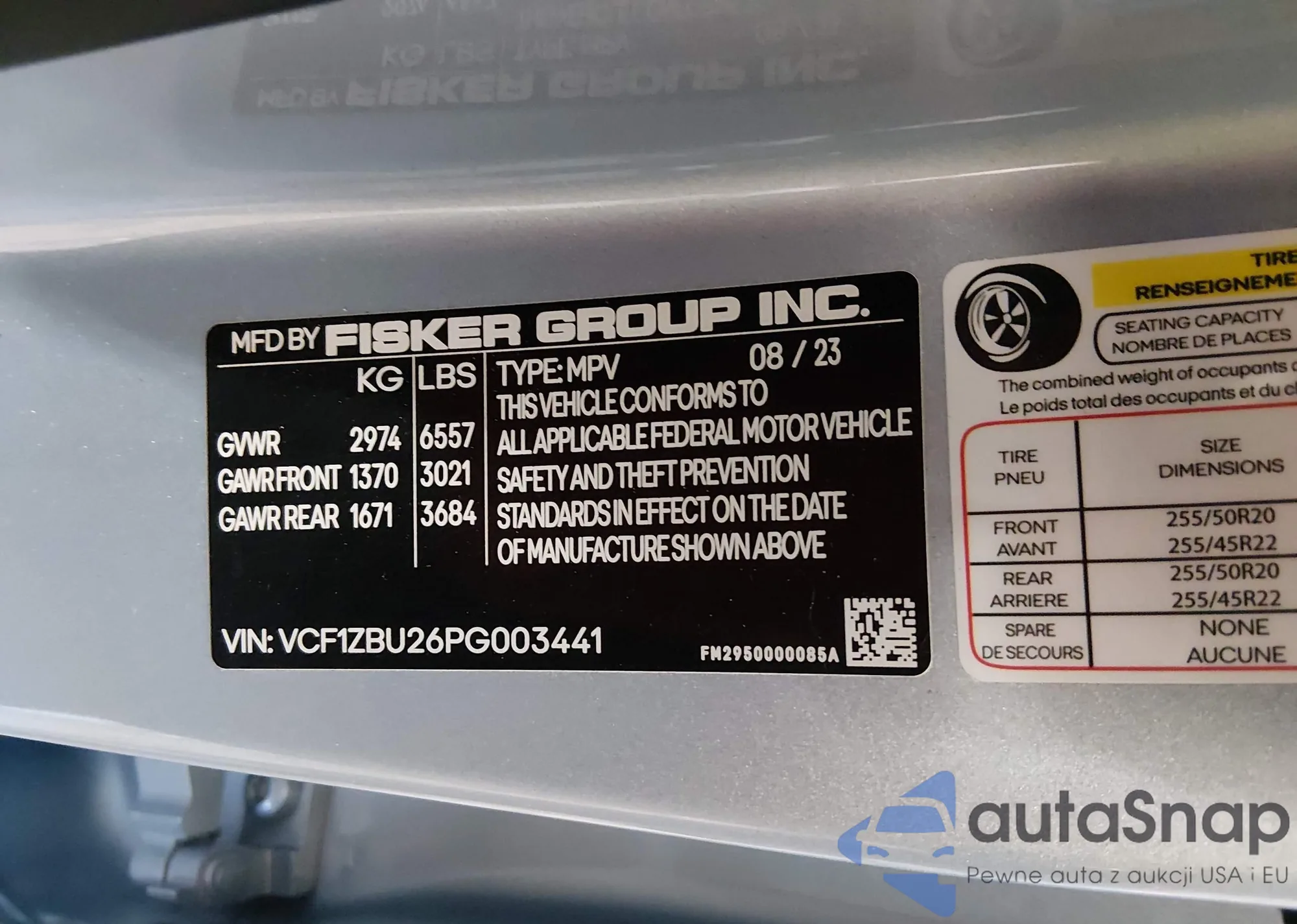 • VIN VCF1ZBU22PG003923