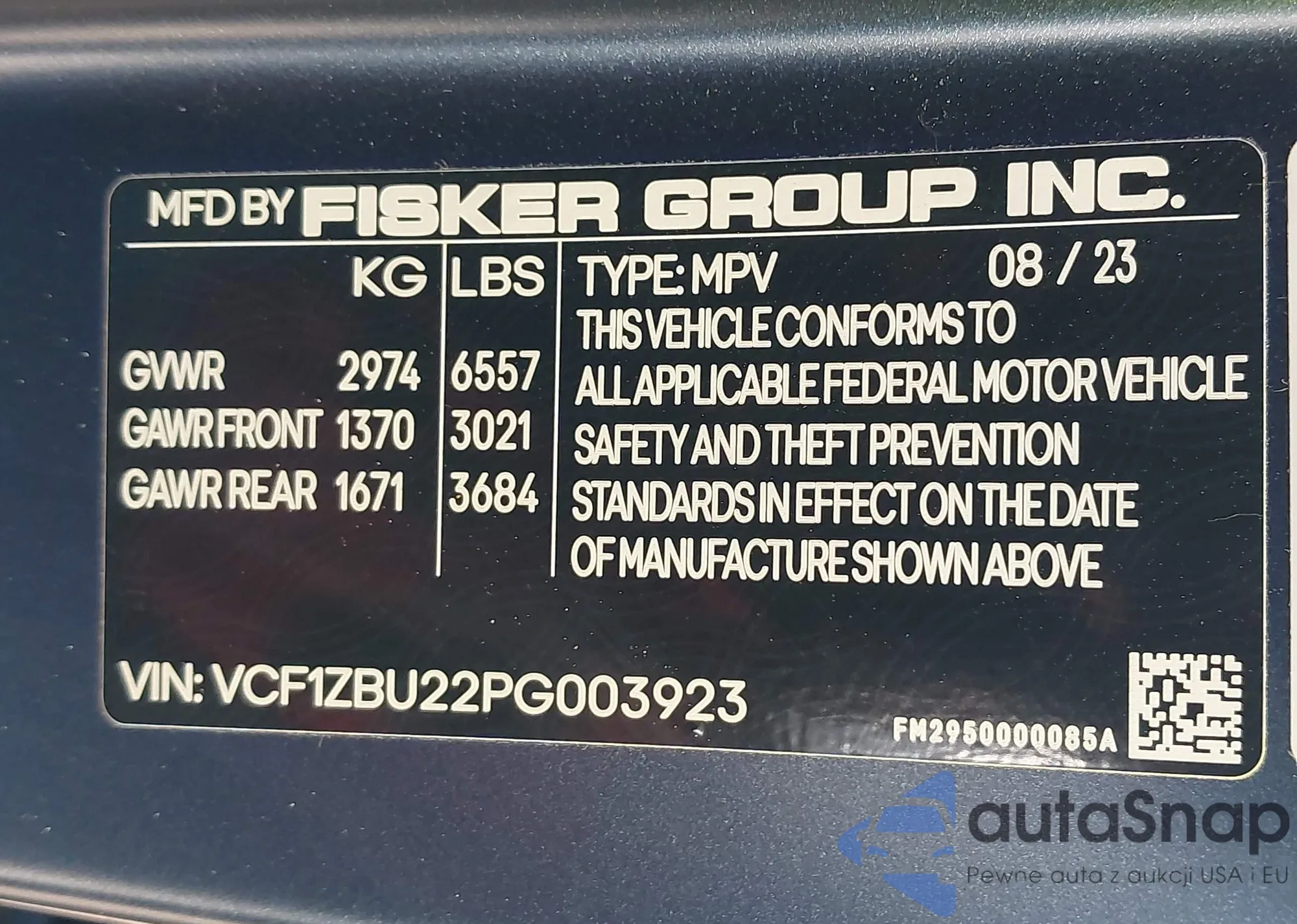 • VIN VCF1ZBU22PG003923