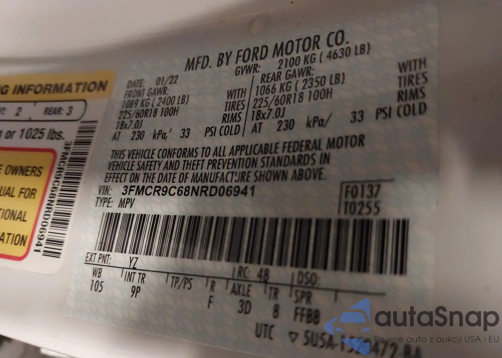 • VIN 3FMCR9C68NRD06941