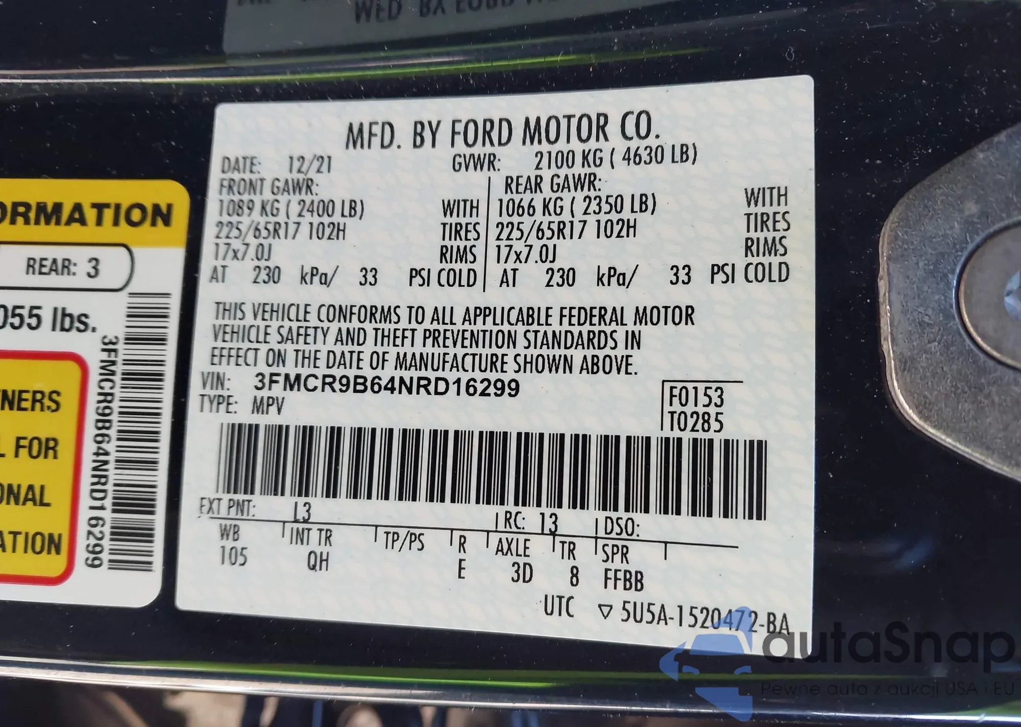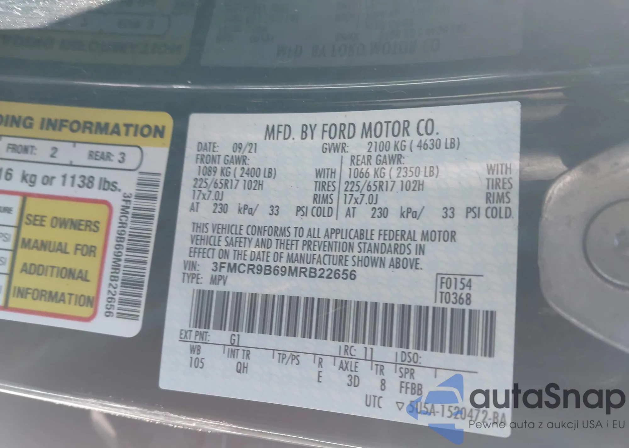 • VIN 3FMCR9B67MRA52378