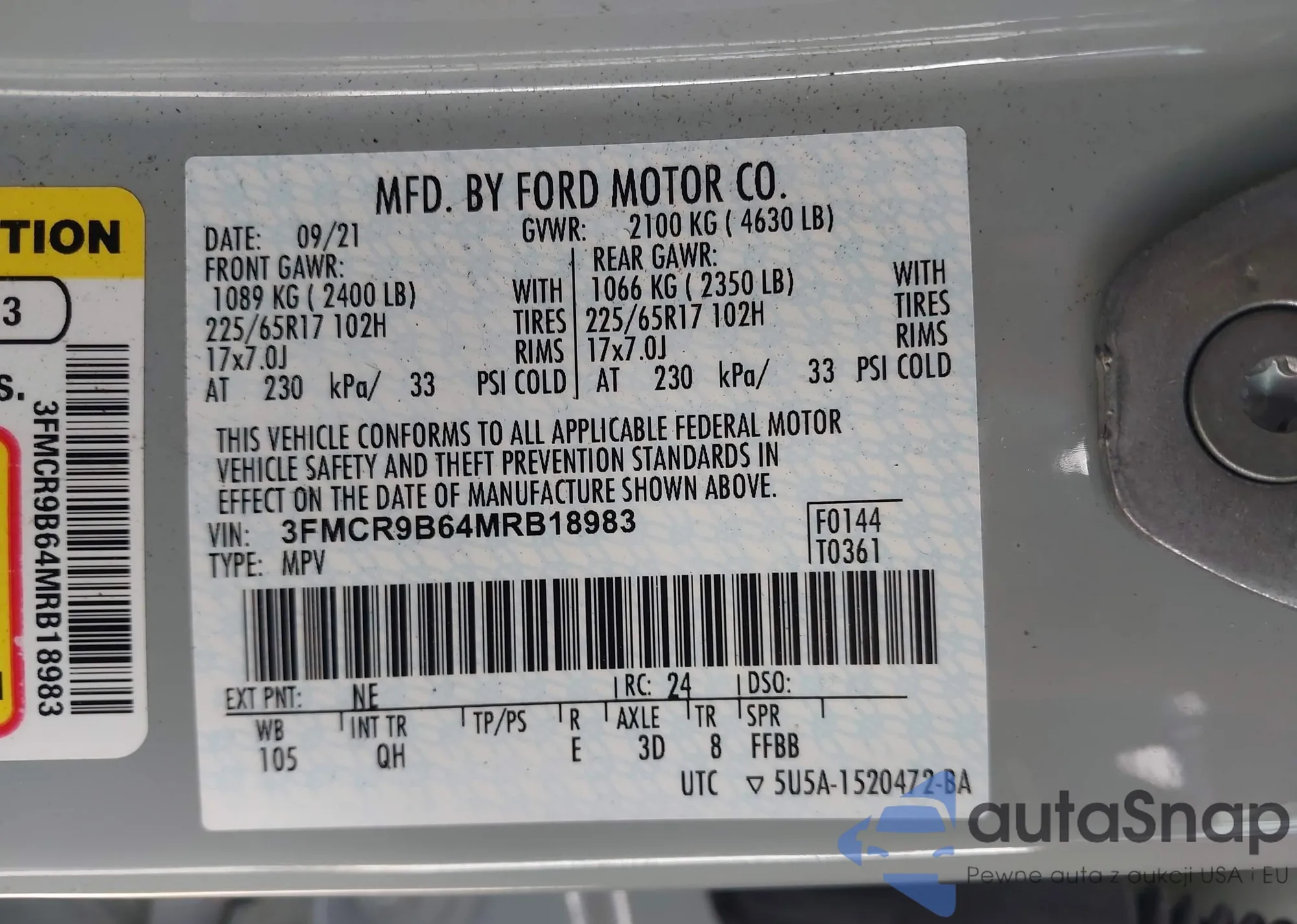 • VIN 3FMCR9B64MRB18983
