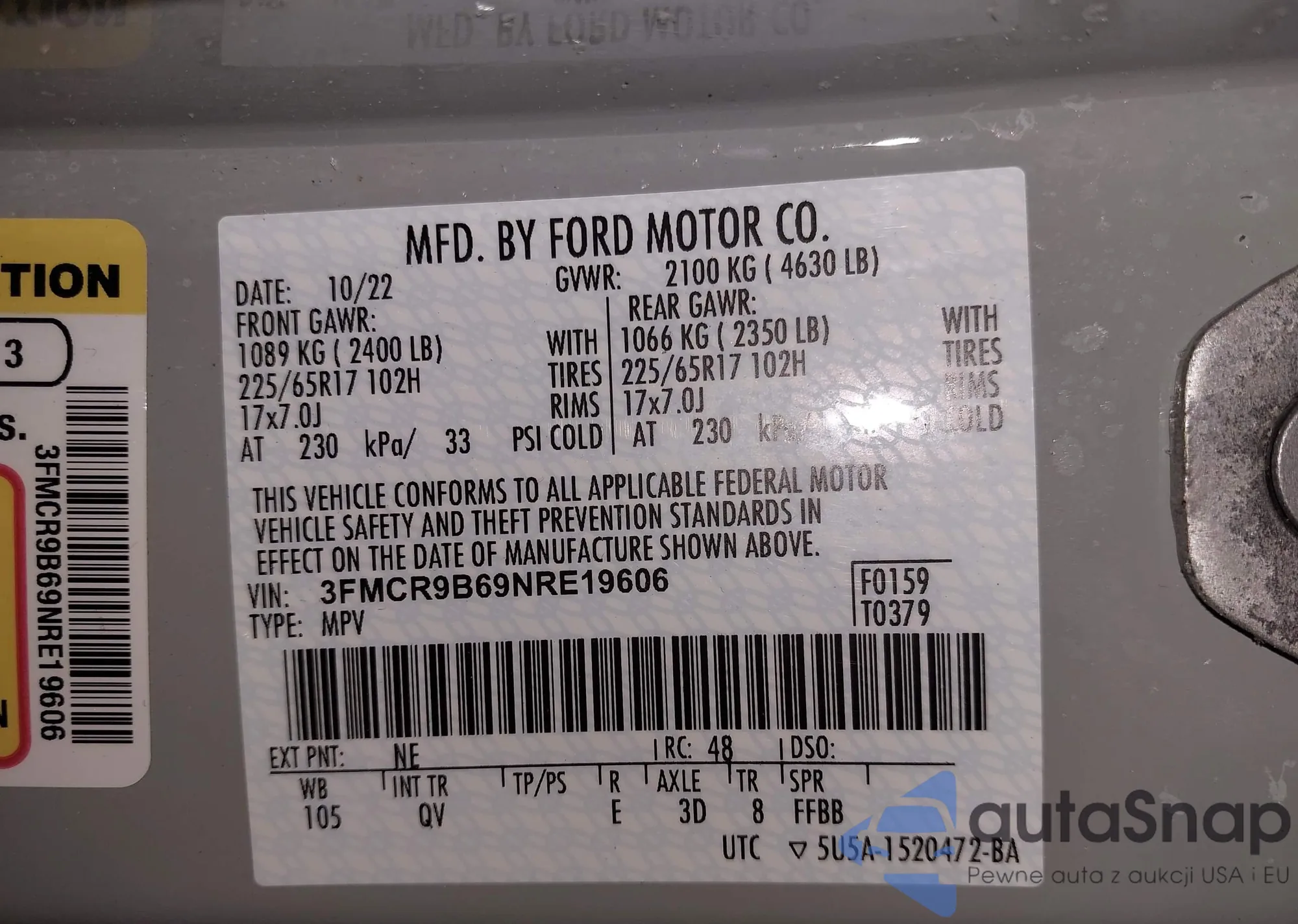 • VIN 3FMCR9B69NRE04975