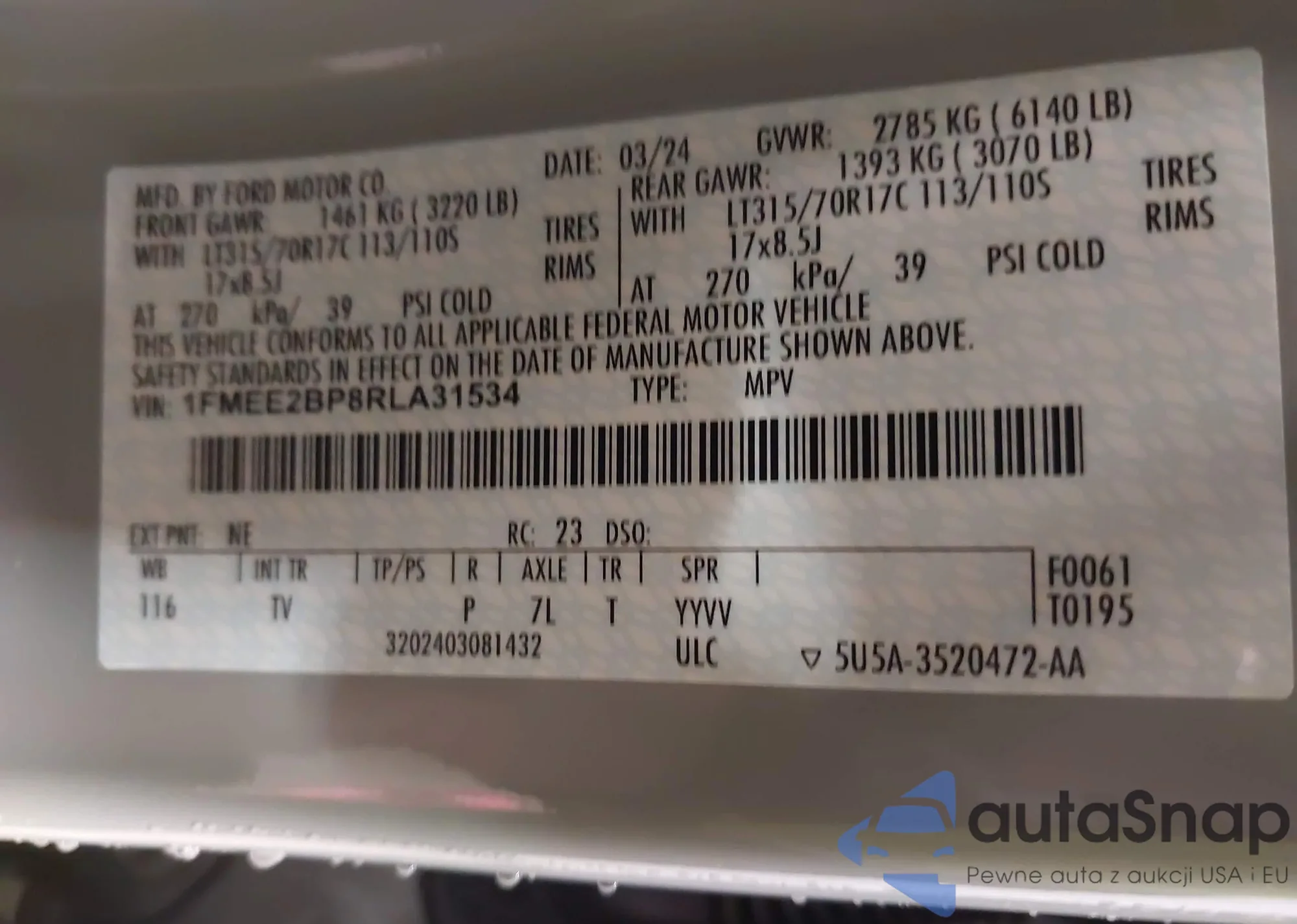 • VIN 1FMEE2BP8RLA31534