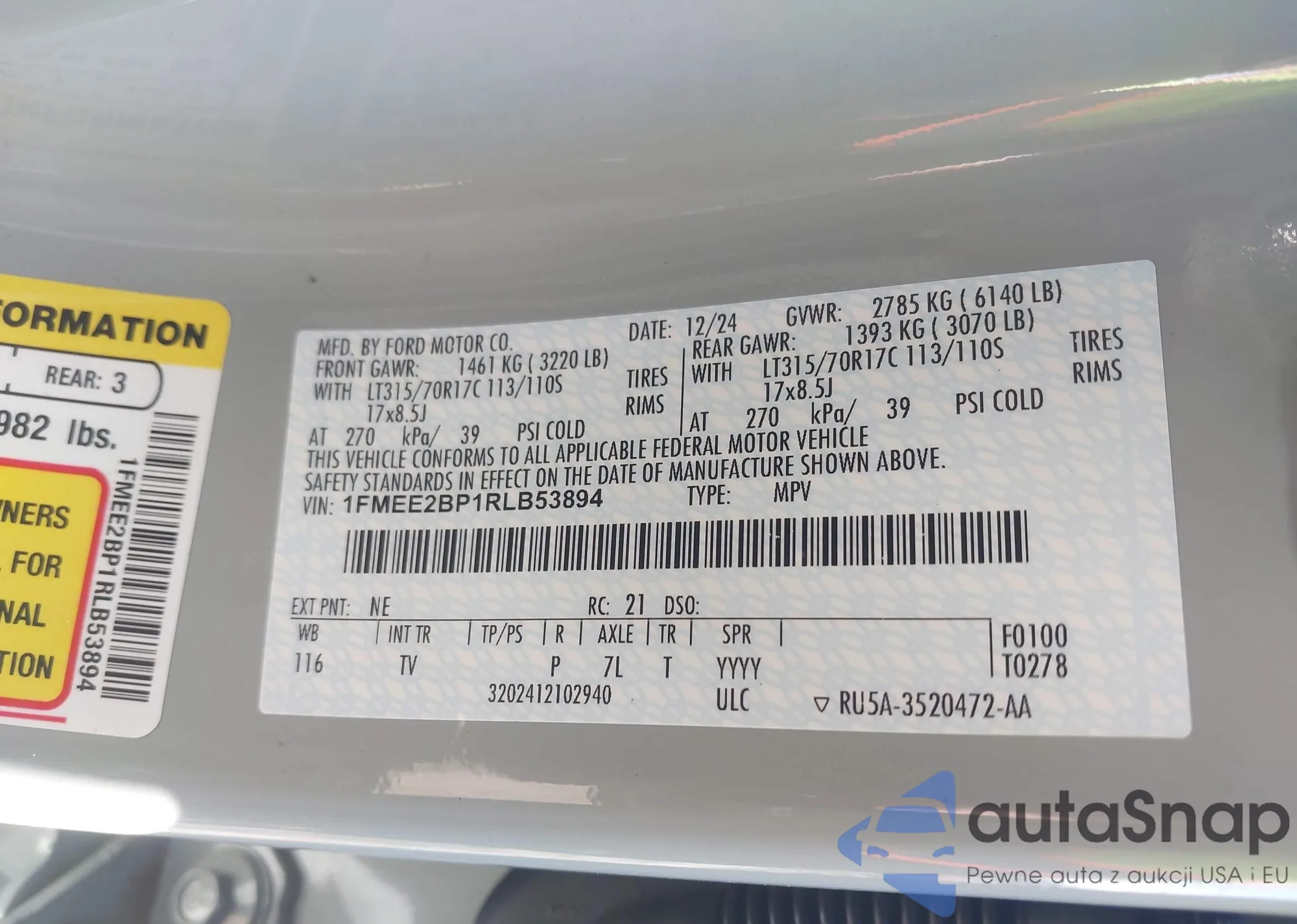 • VIN 1FMEE2BP1RLB53894