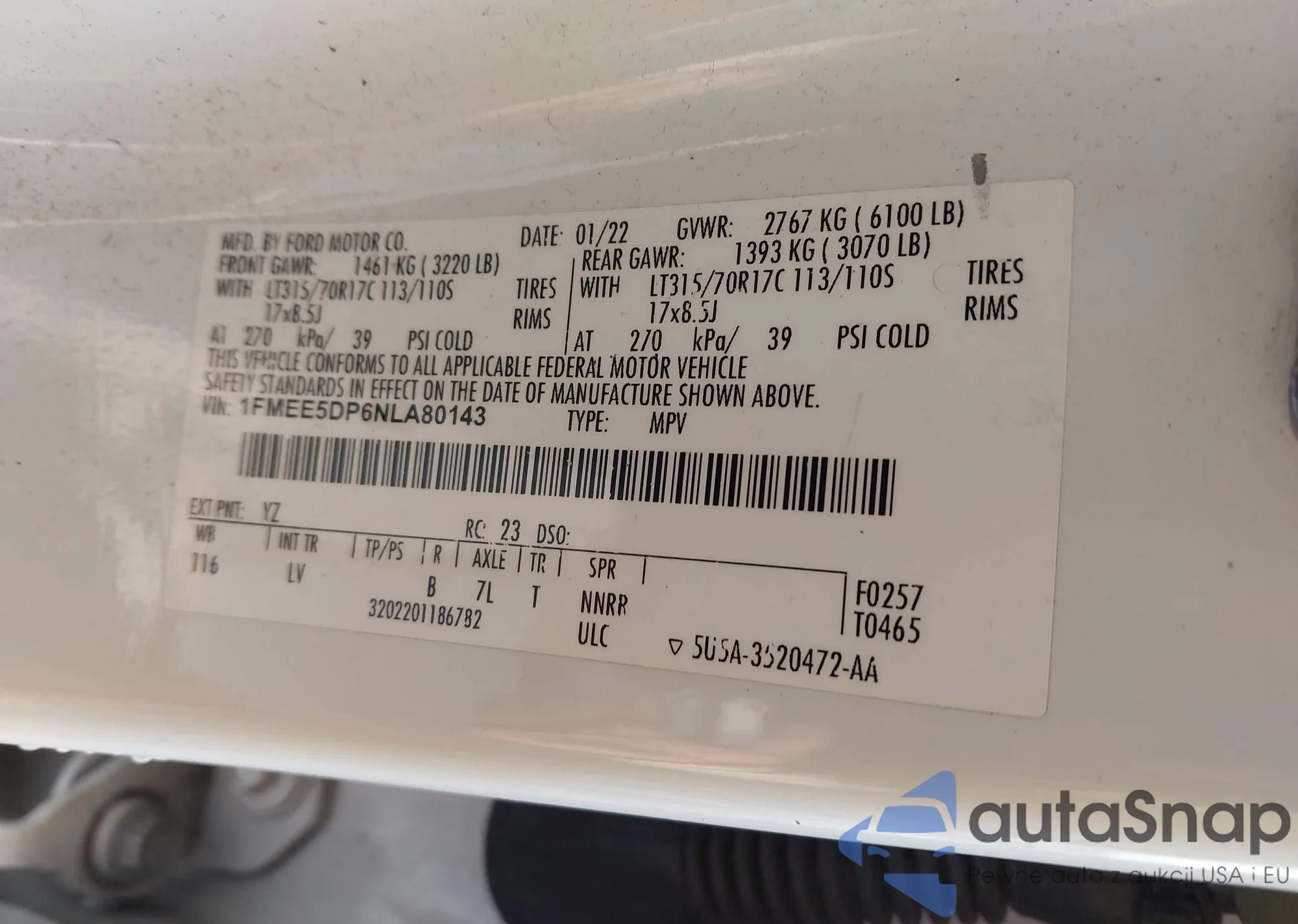 • VIN 1FMEE5DP6NLA80143