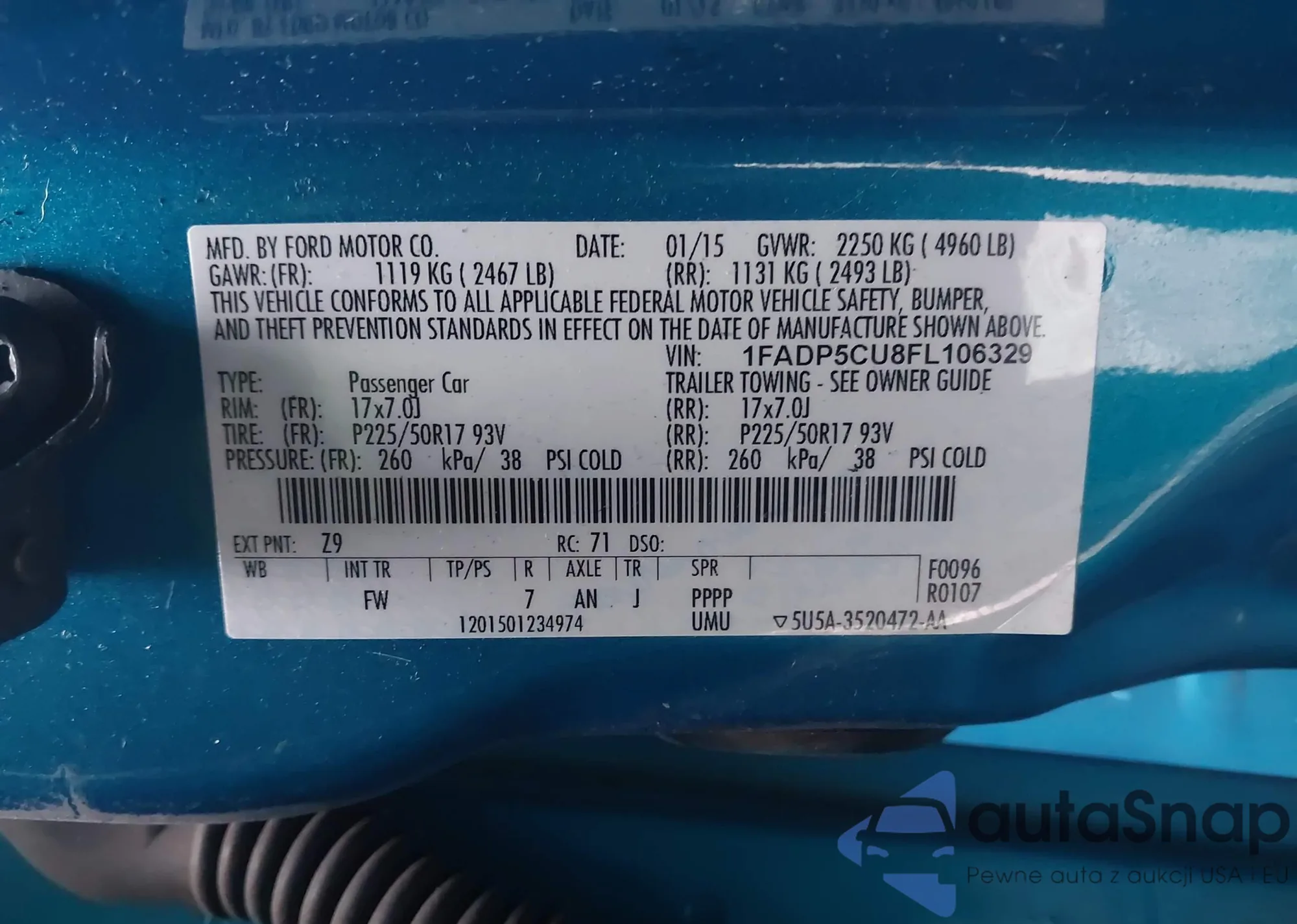 • VIN 1FADP5CU8FL106329