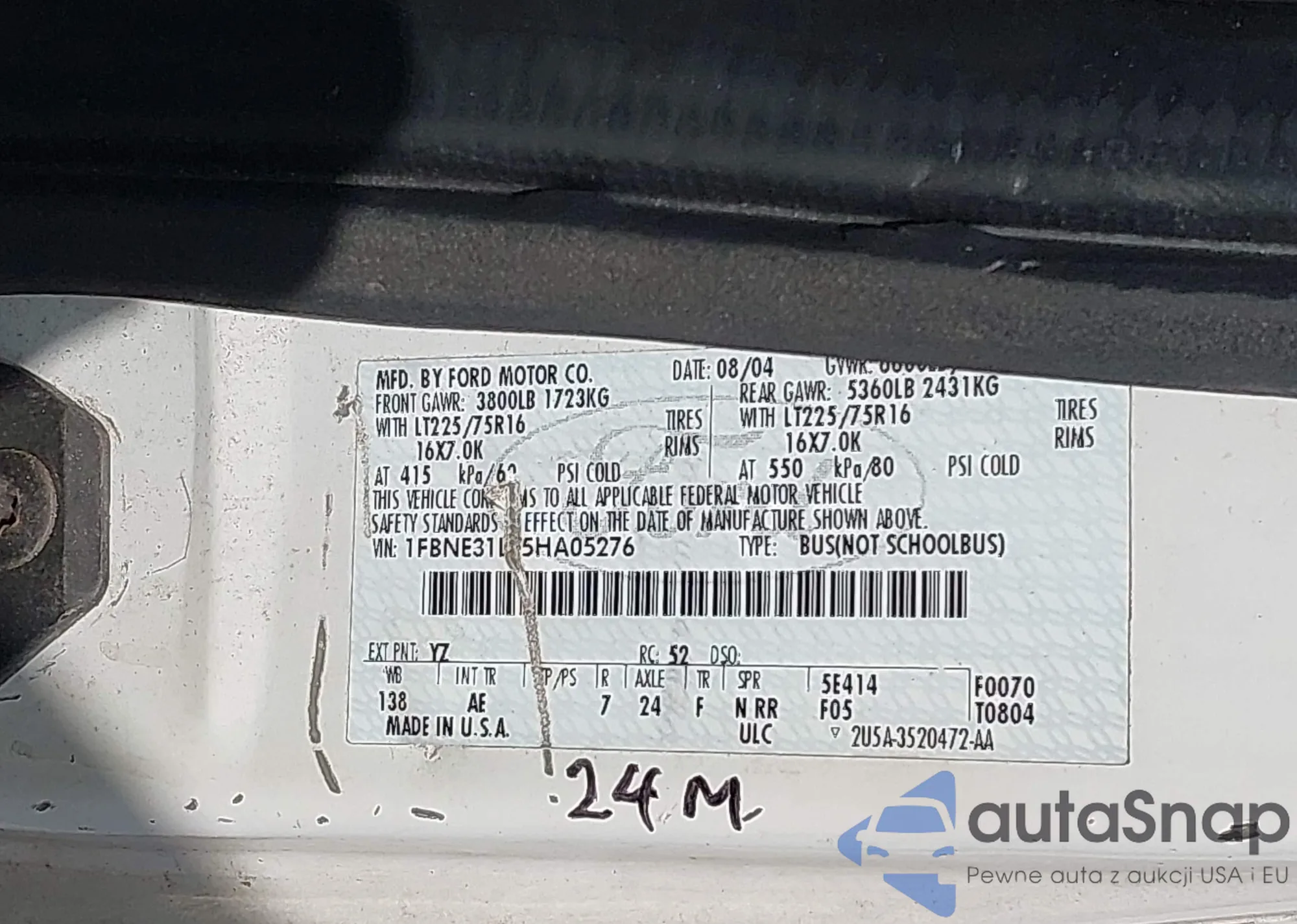 • VIN 1FBNE31L05HA05276