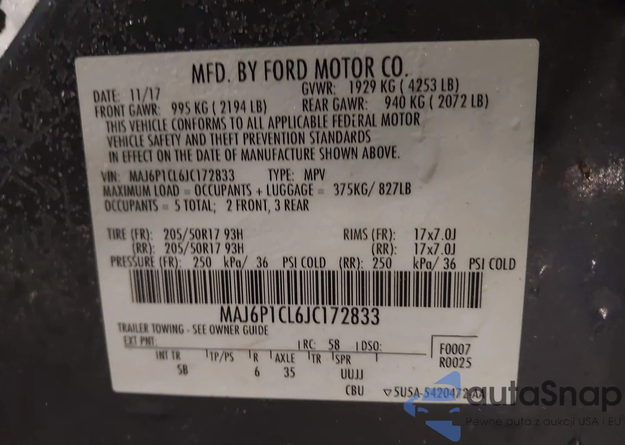 • VIN MAJ6P1CL6JC172833