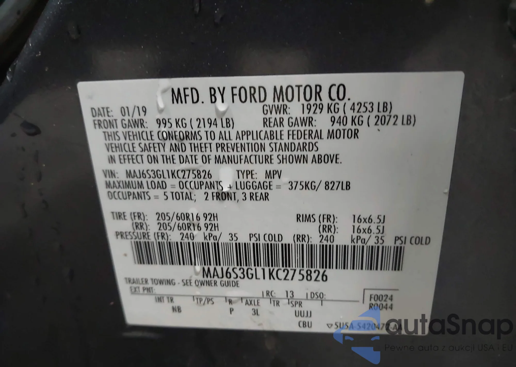 • VIN MAJ6S3GL1KC275826