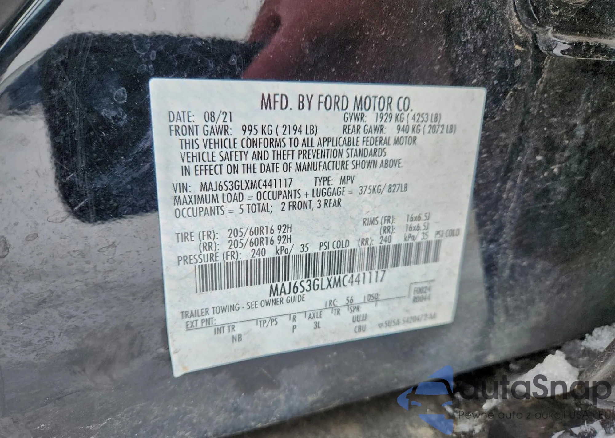 • VIN MAJ6S3GLXMC441117