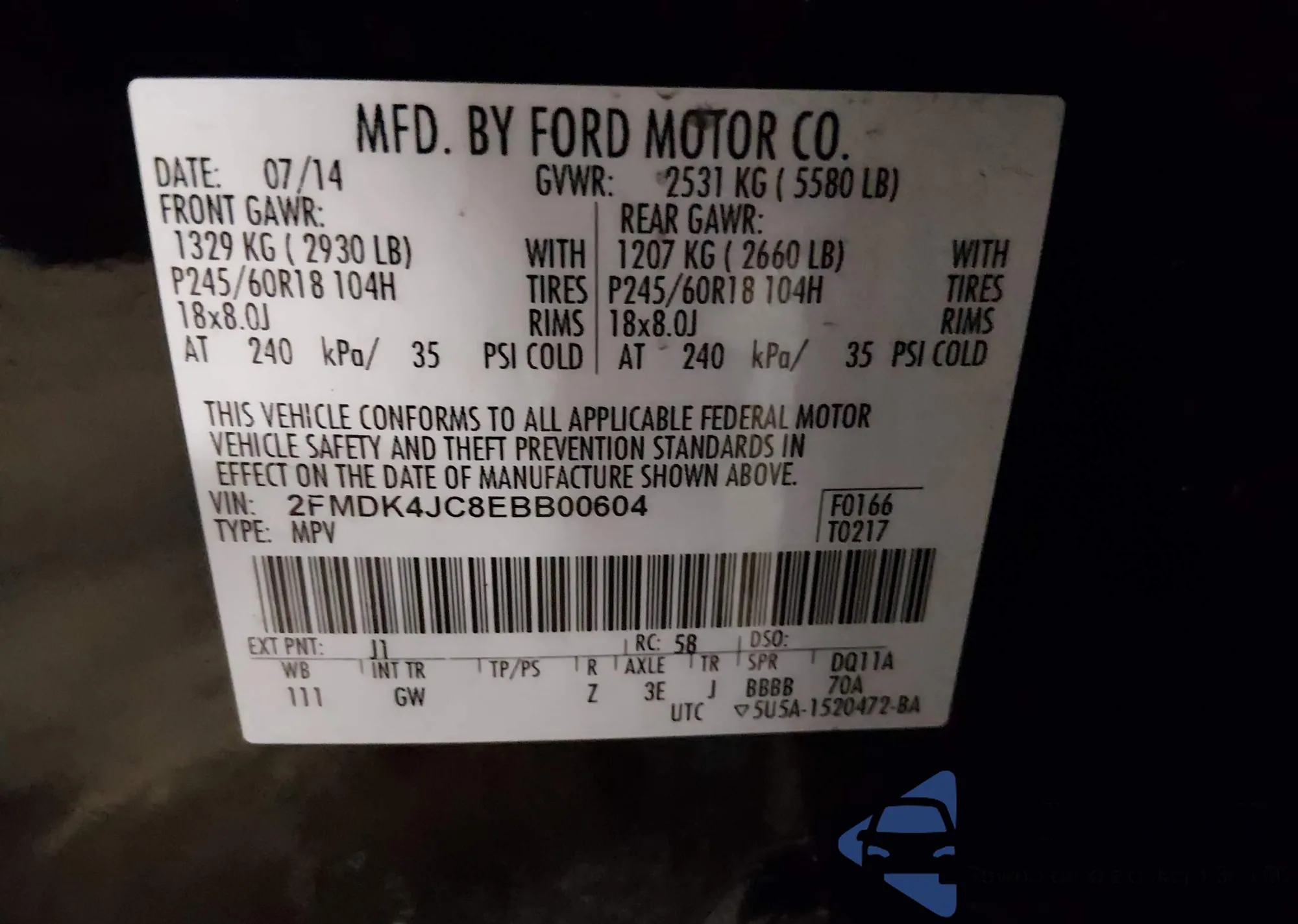 • VIN 2FMDK4JC8EBB00604