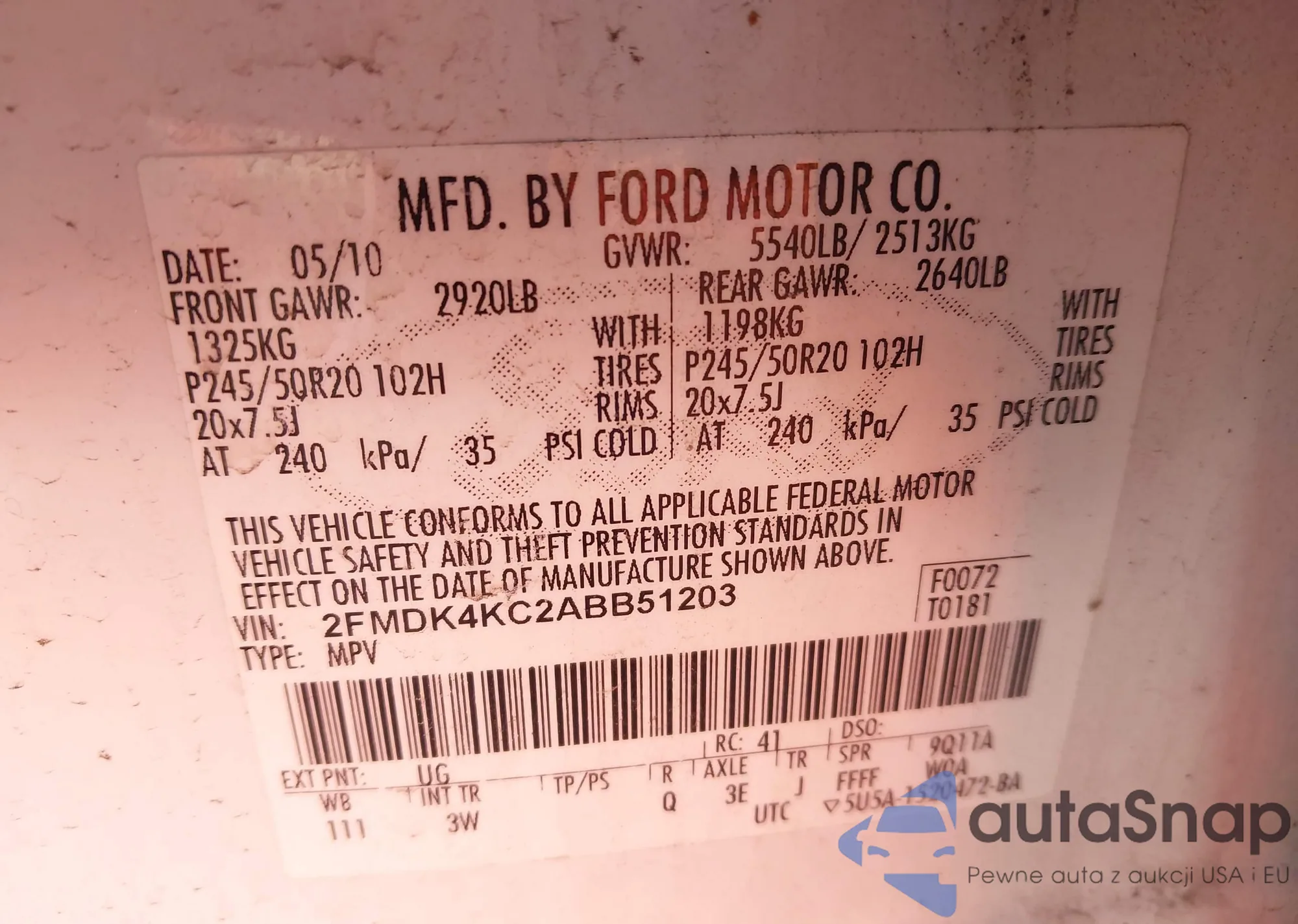 • VIN 2FMDK4KC2ABB51203