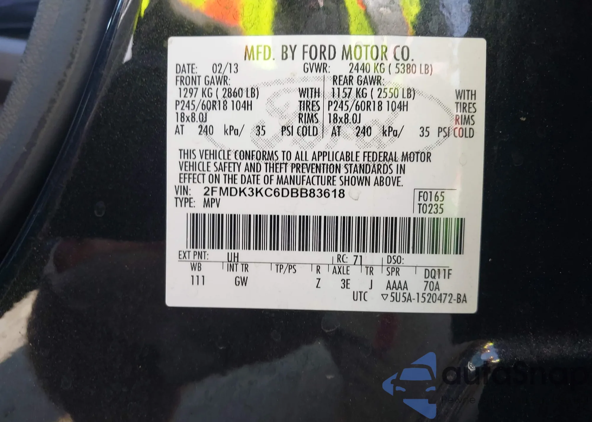 • VIN 2FMDK3KC6DBB83618