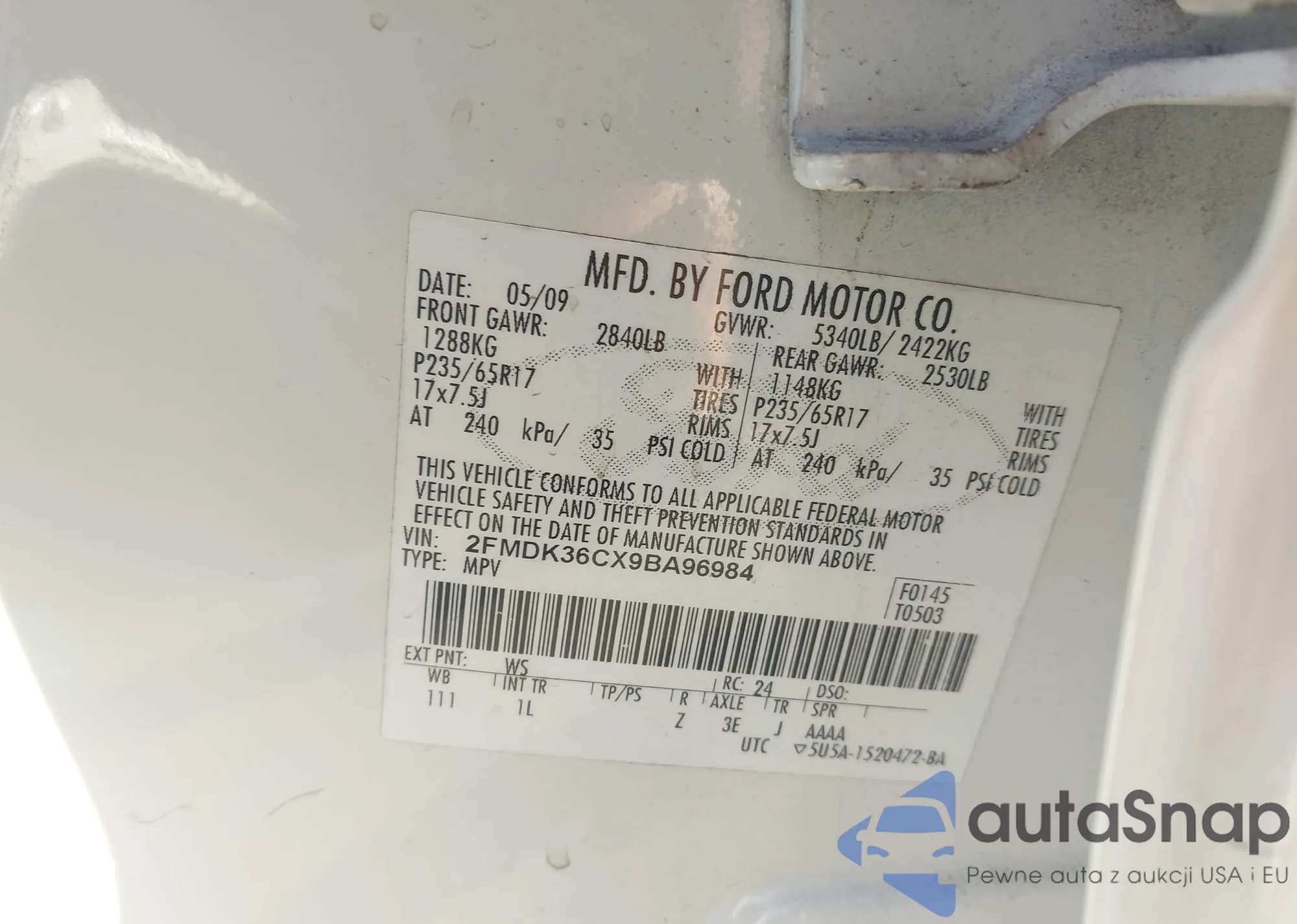 • VIN 2FMDK3KC5ABA35777