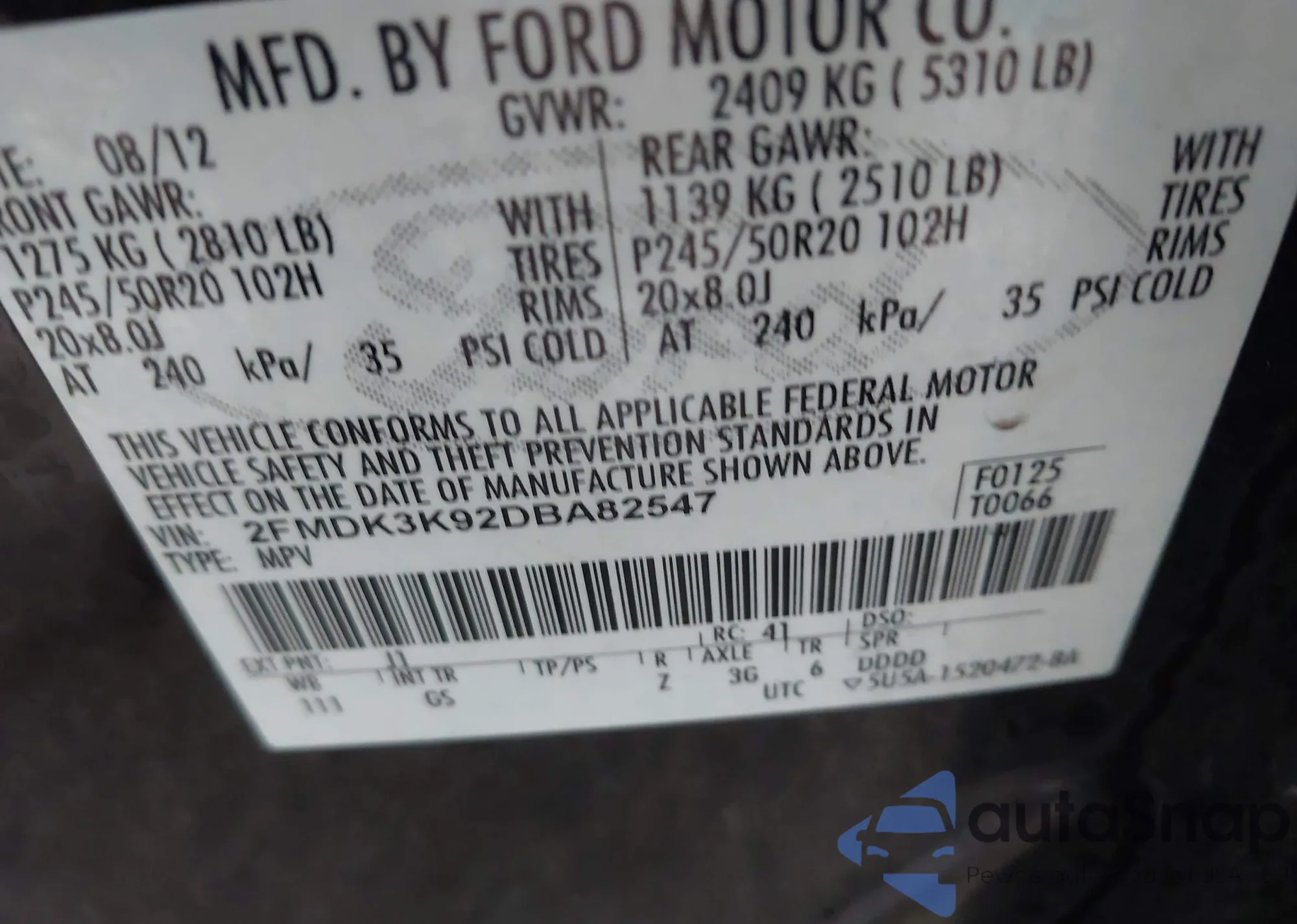 • VIN 2FMDK3K92DBA82547