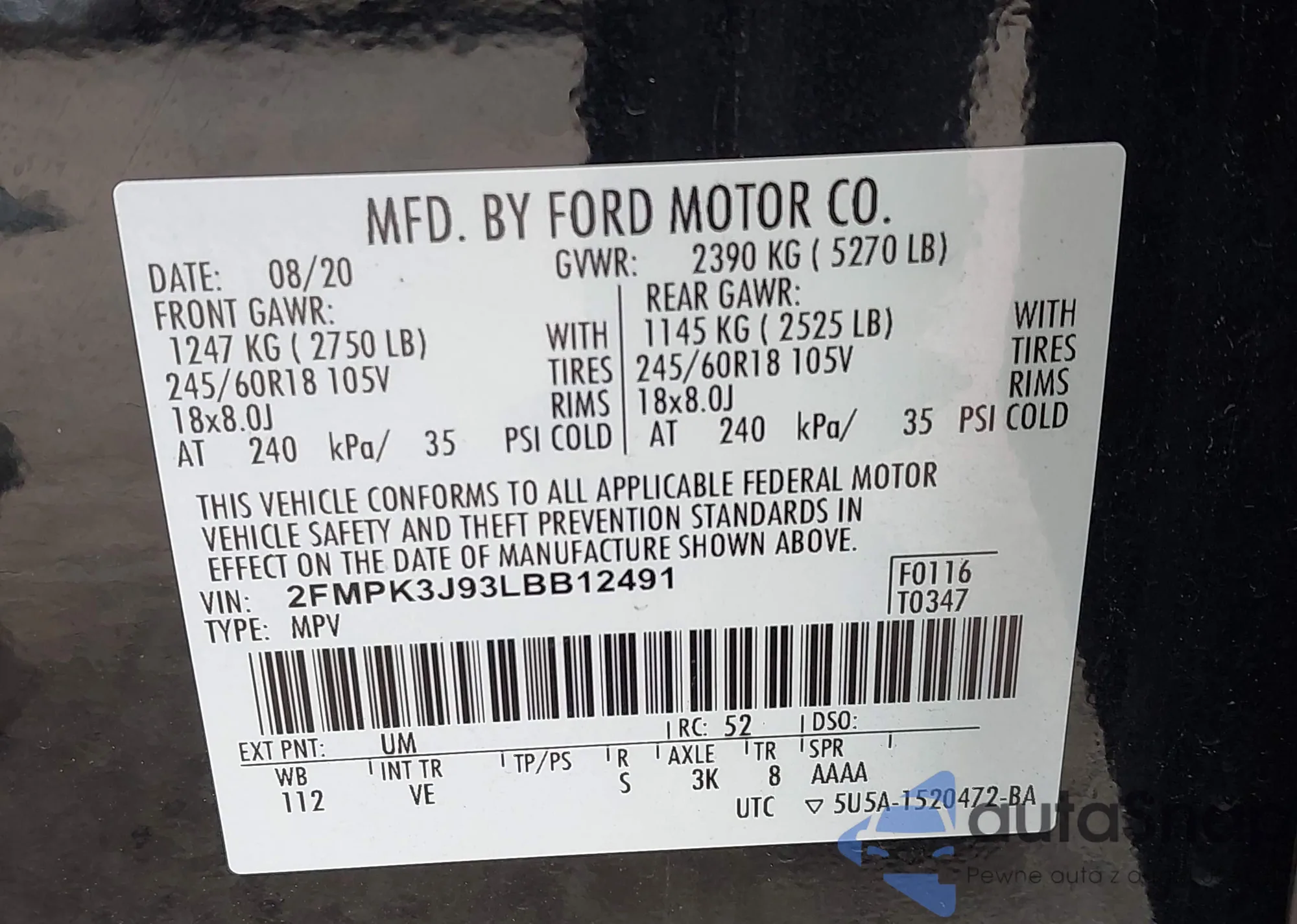 • VIN 2FMPK3K9XLBA20468