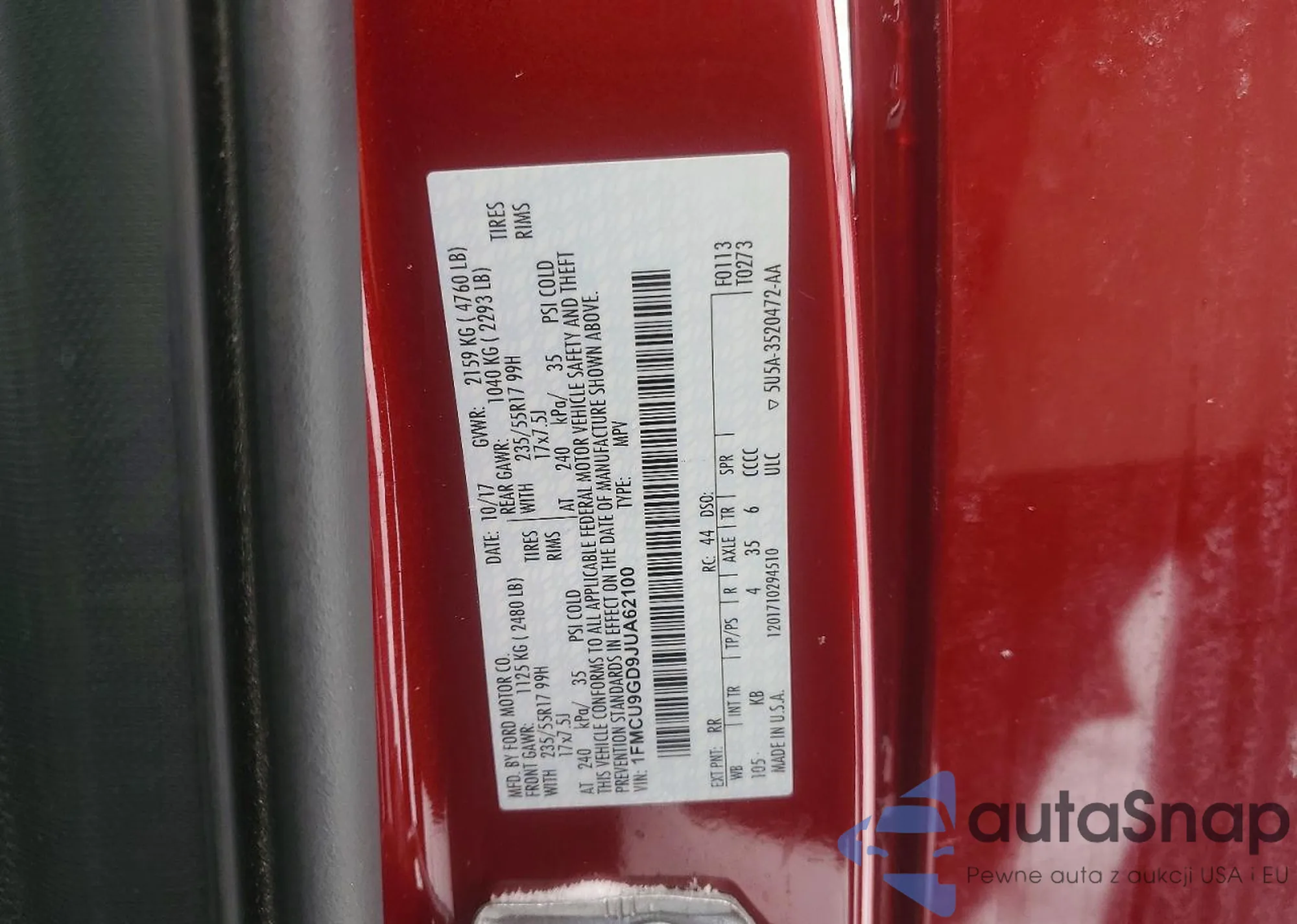 • VIN 1FMCU9GD9JUA62100