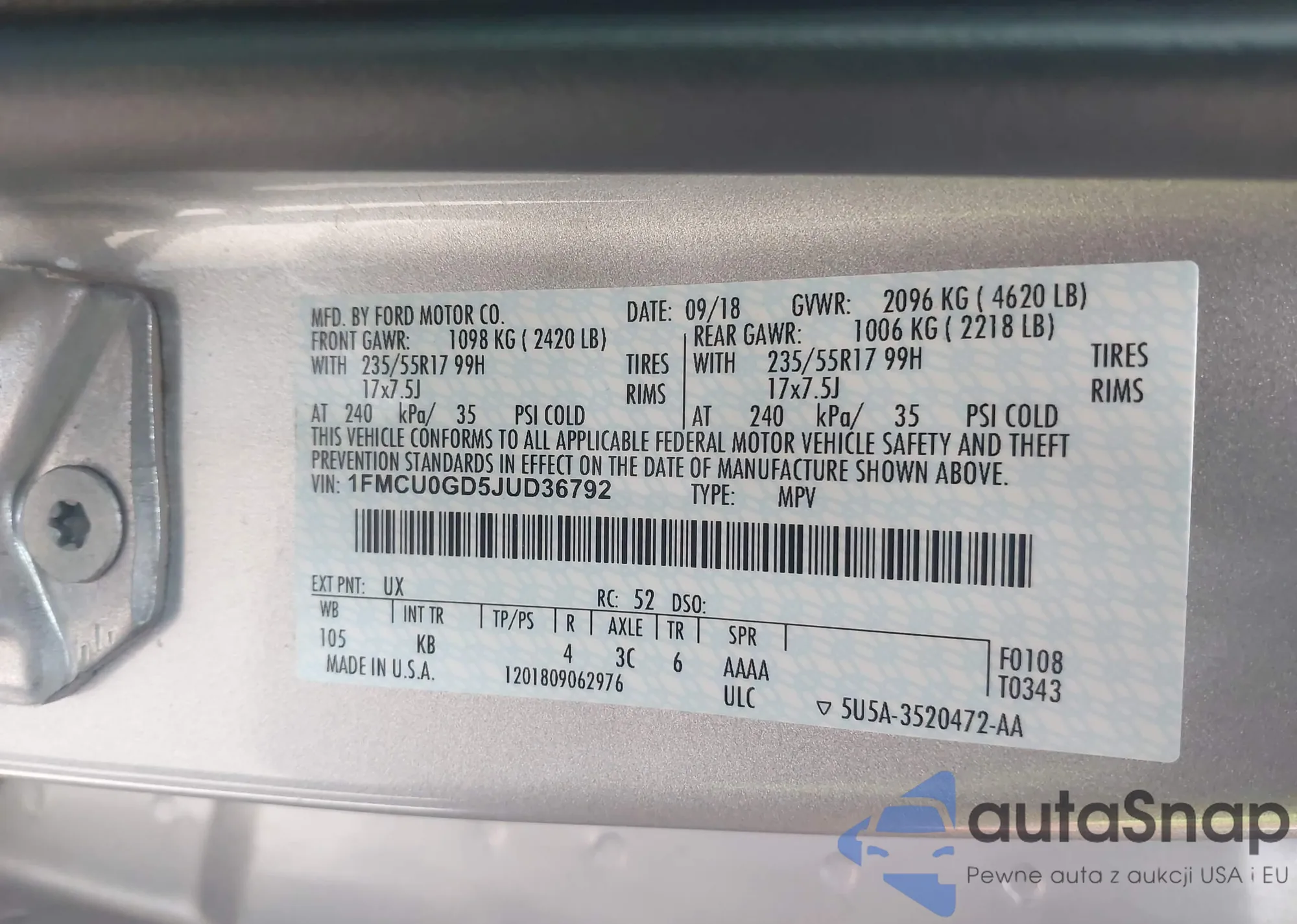 • VIN 1FMCU0GD5JUD36792