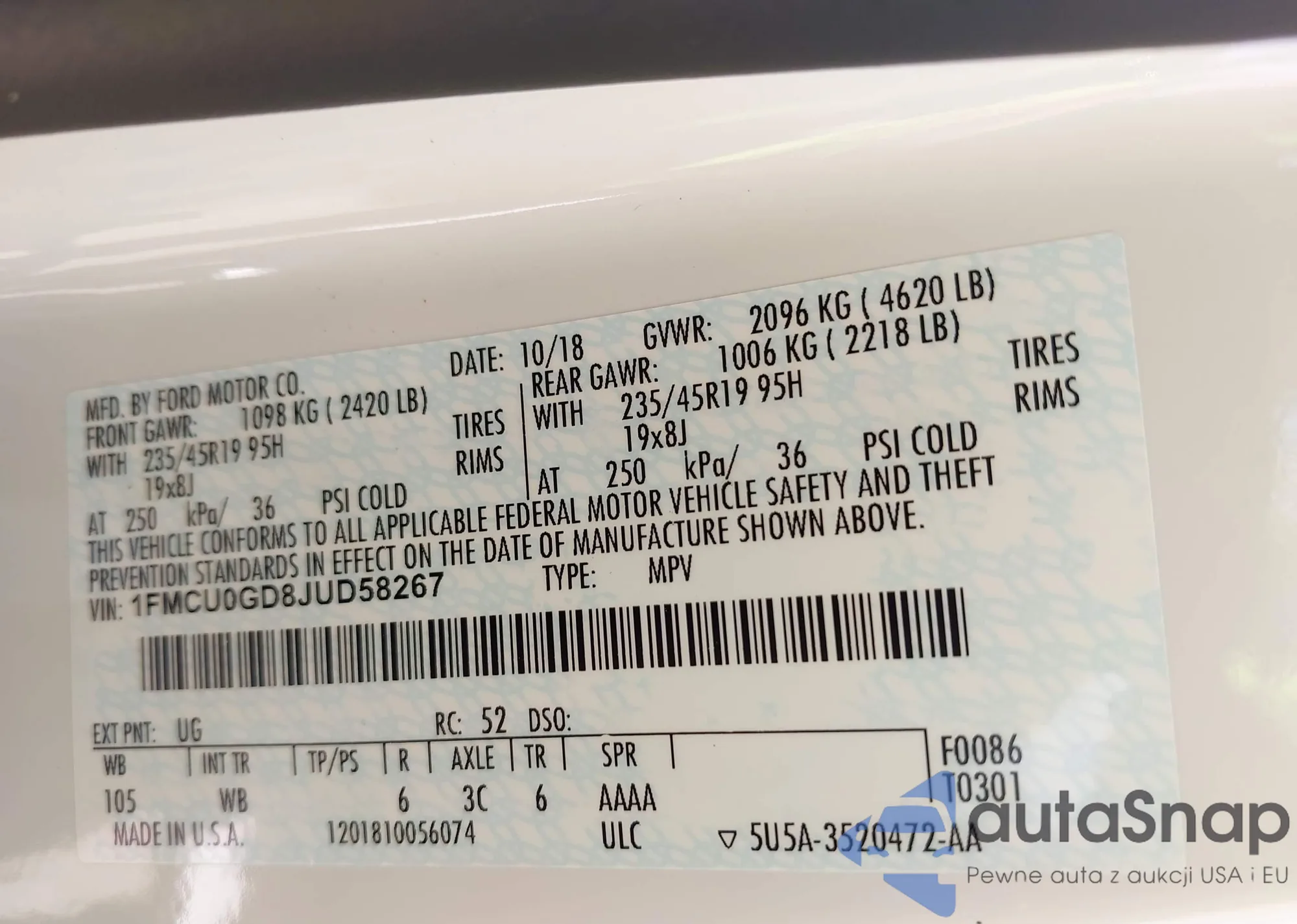• VIN 1FMCU0GD8JUD58267