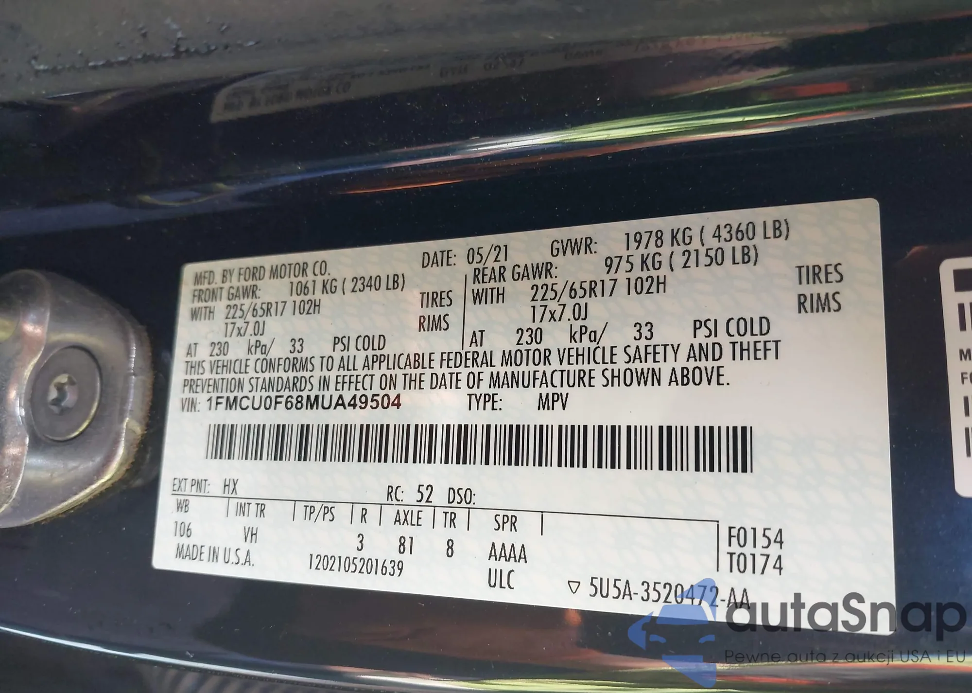 • VIN 1FMCU0F68MUA49504