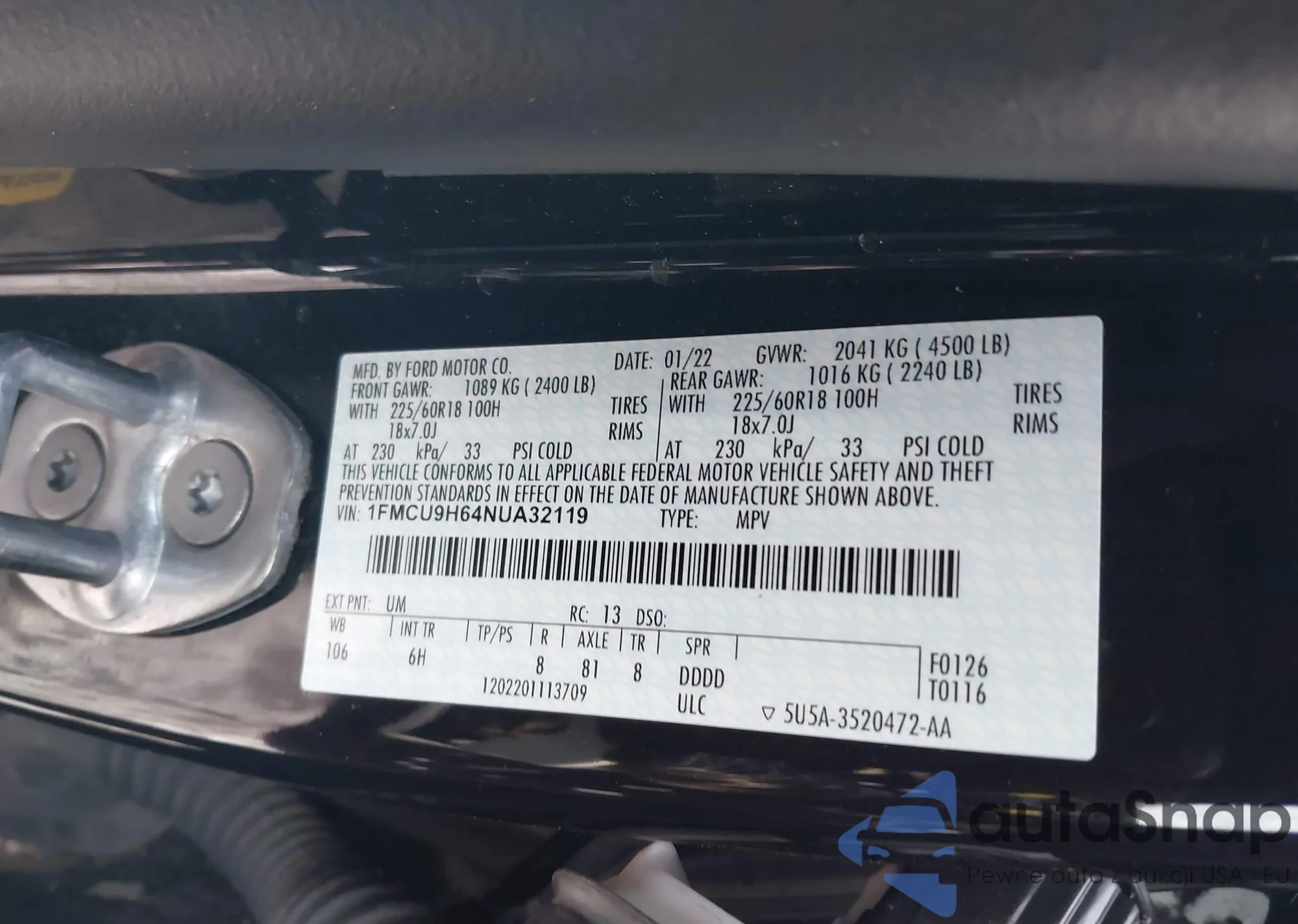 • VIN 1FMCU9G69NUB27504