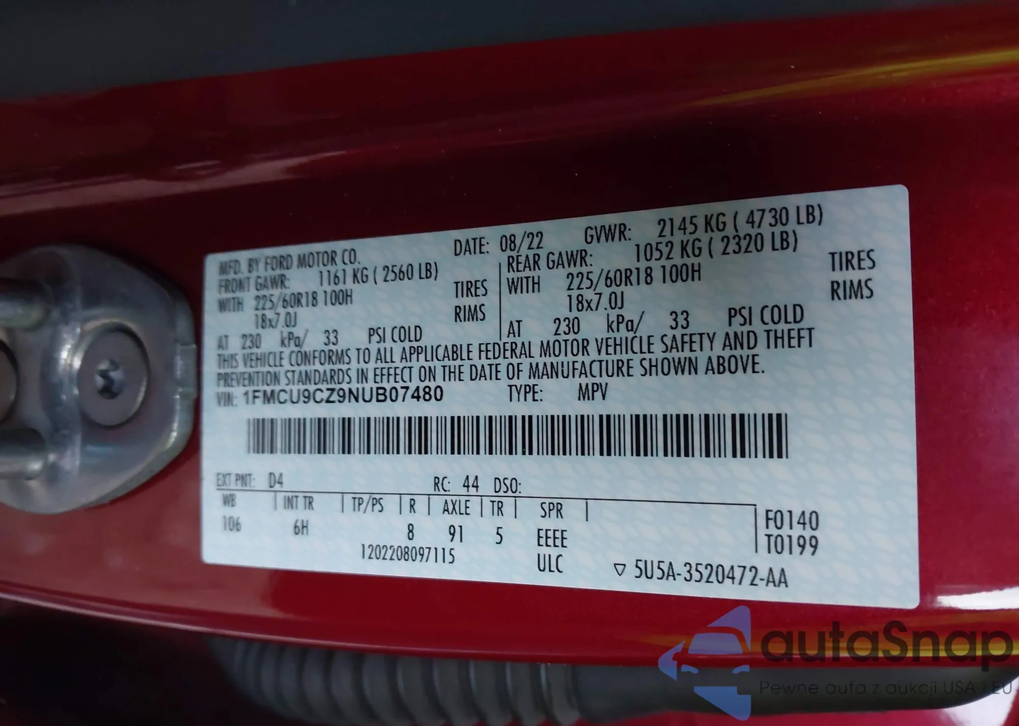 • VIN 1FMCU9CZ9NUB07480