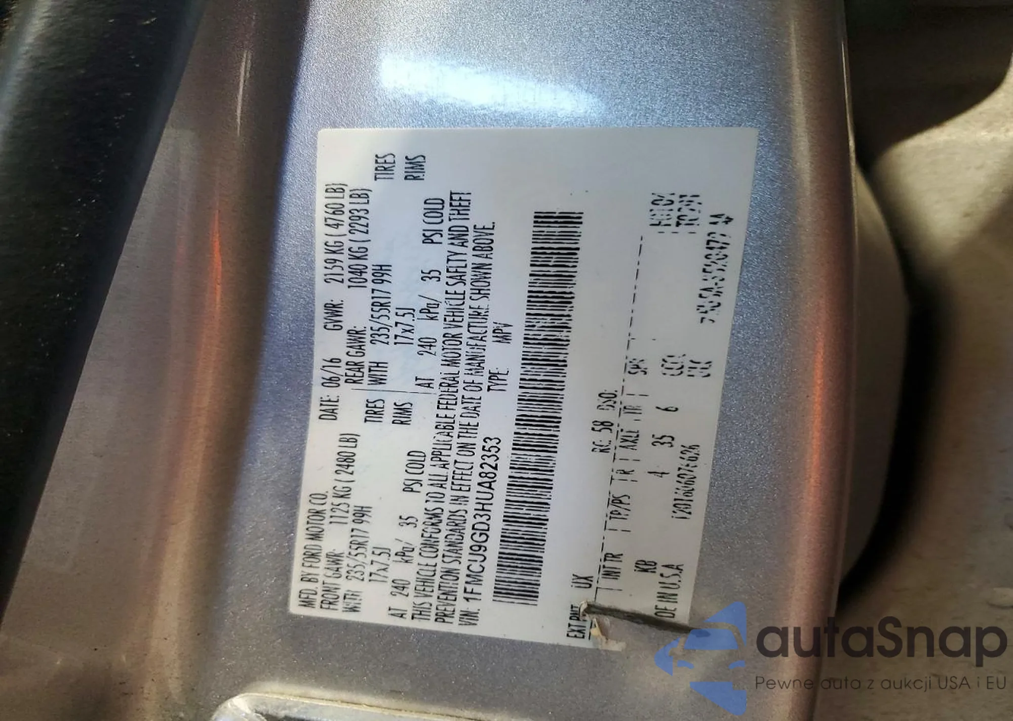 • VIN 1FMCU9GD3HUA82353