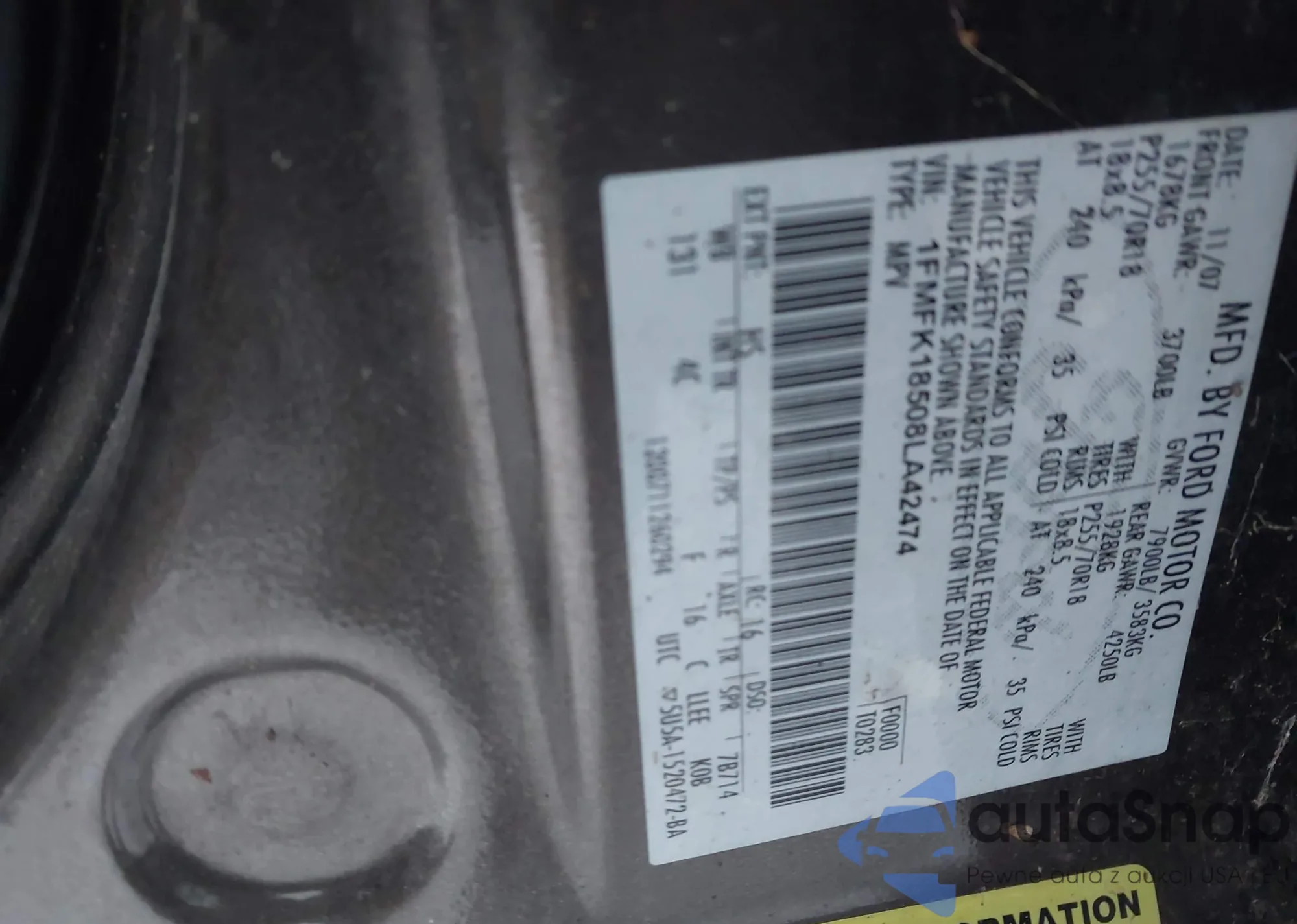 LOT: 43828754 VIN: 1FMFK18508LA42474