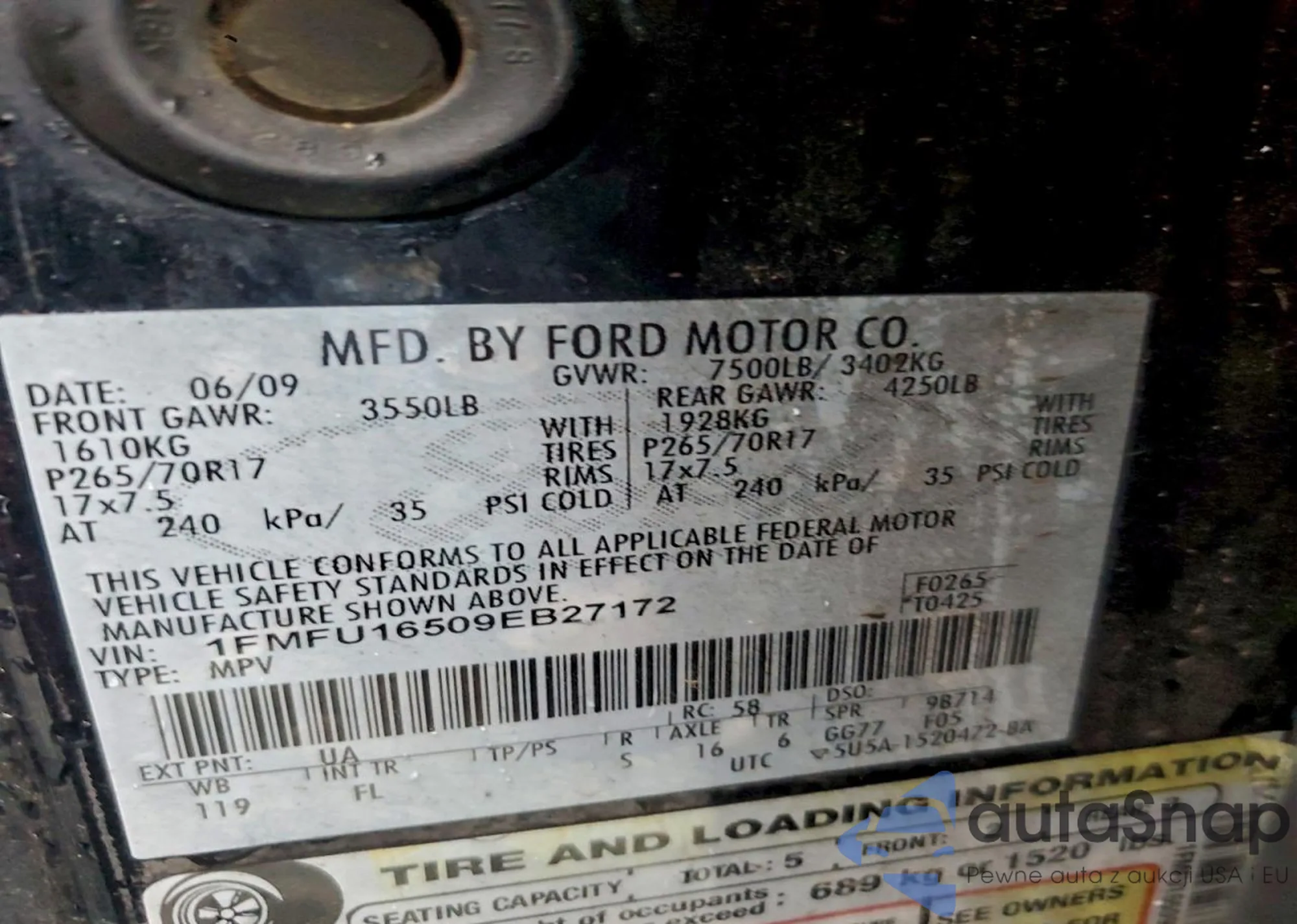 LOT: 96068145 VIN: 1FMFU16509EB27172