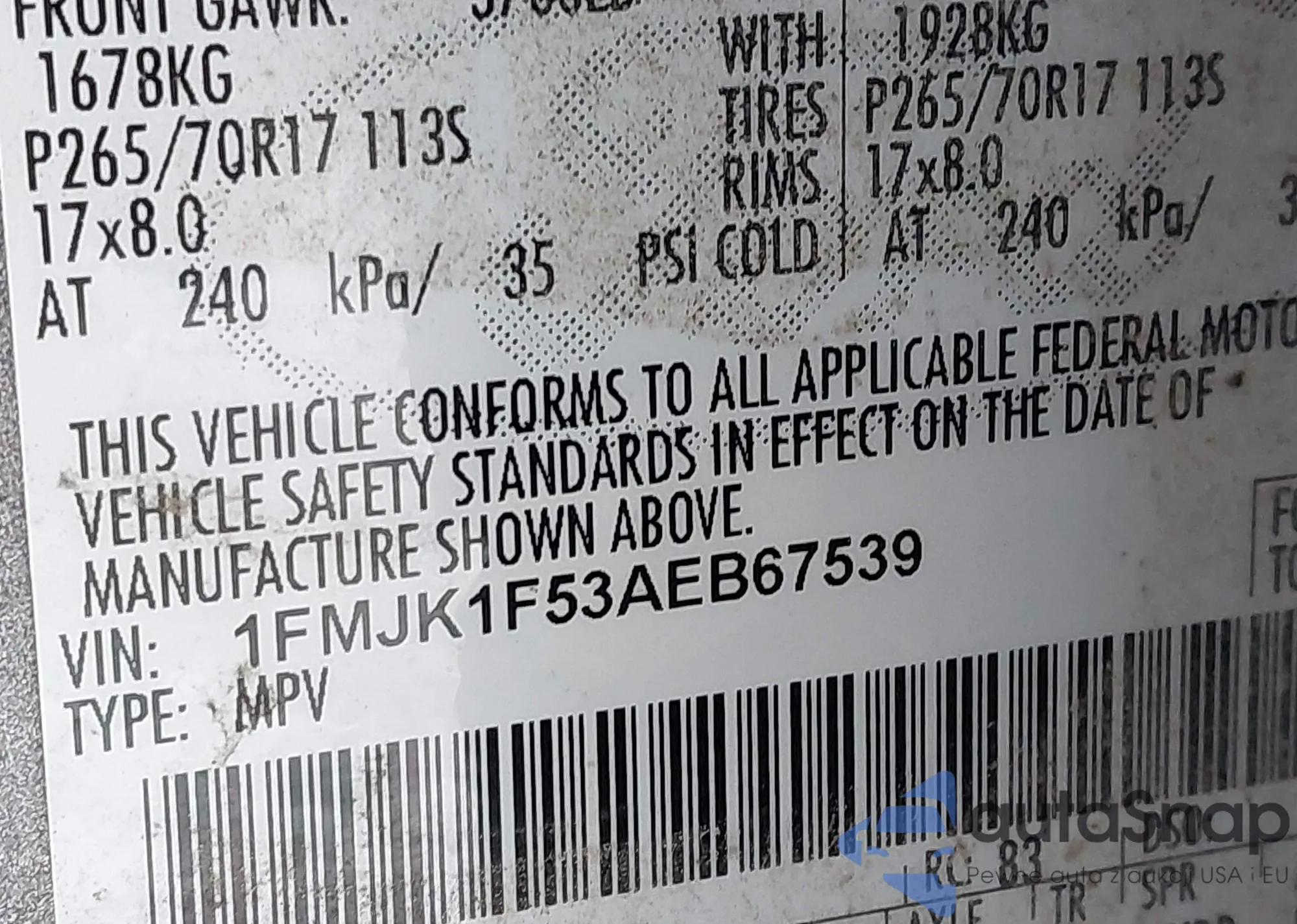 • VIN 1FMJK1F53AEB67539