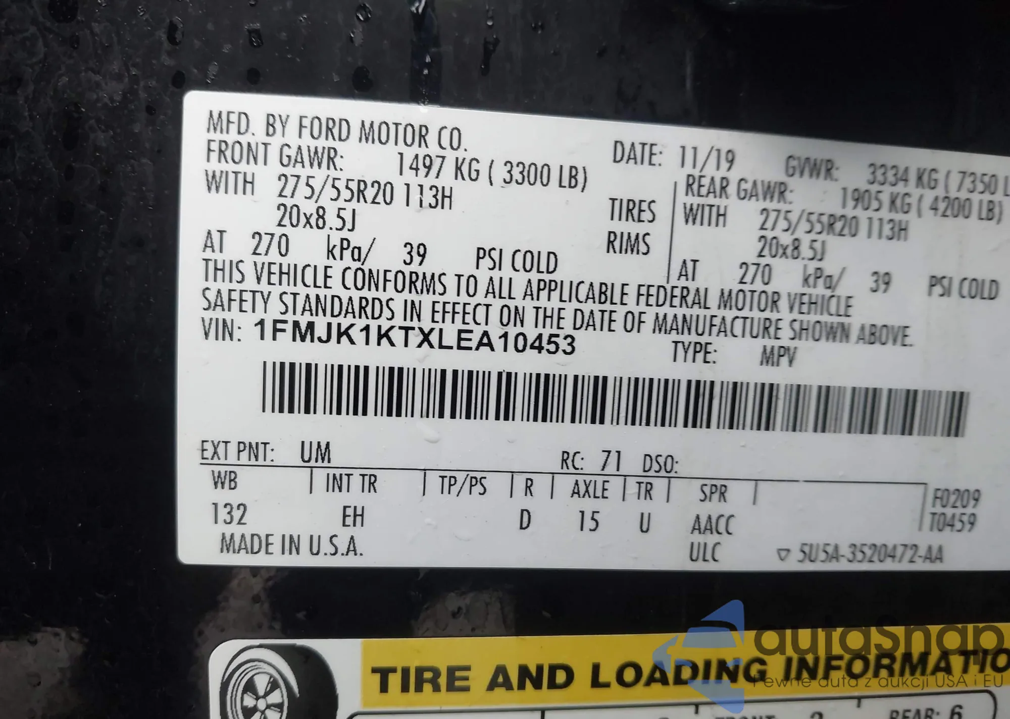 • VIN 1FMJK1KTXLEA10453