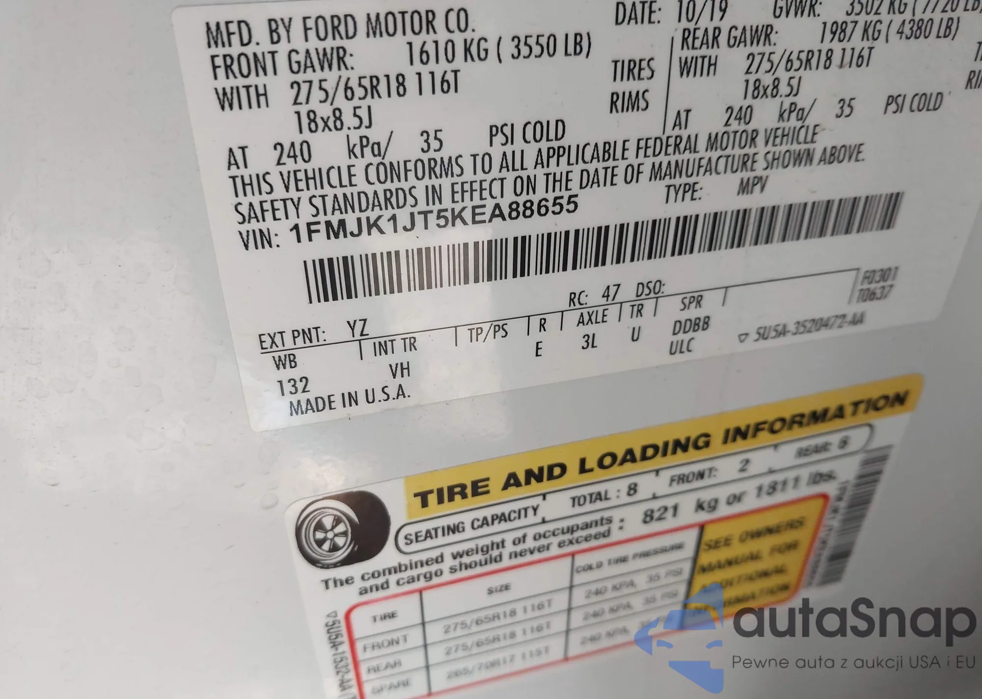 • VIN 1FMJK1JT5KEA88655