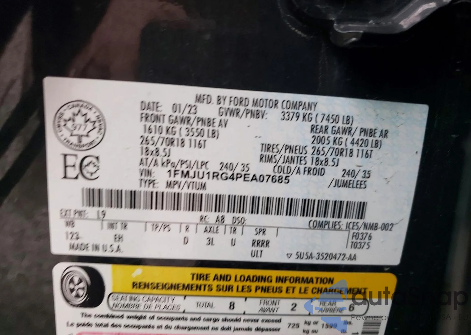 • VIN 1FMJU1RG4PEA07685