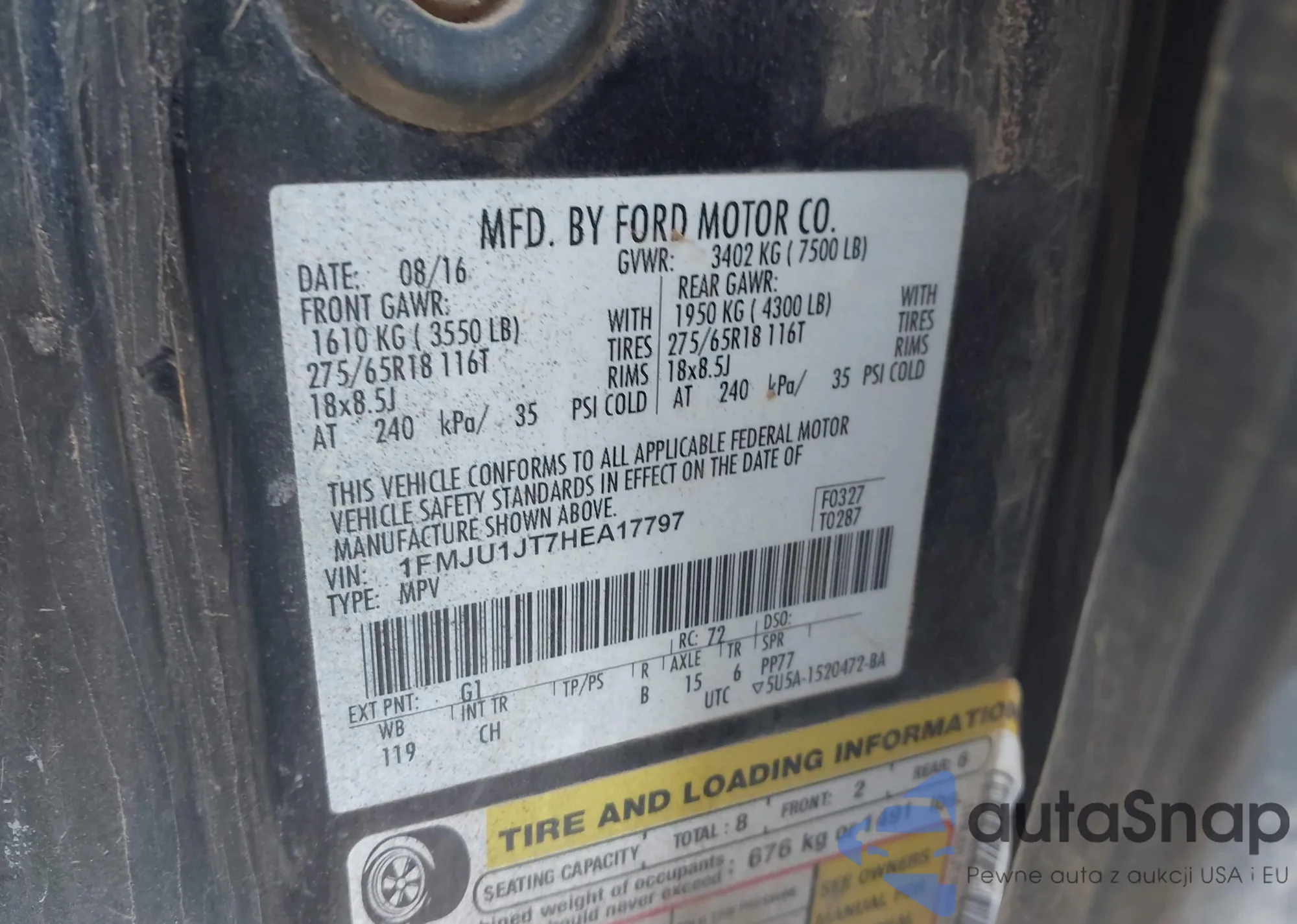 LOT: 43318754 VIN: FMJU1JT7HEA17797