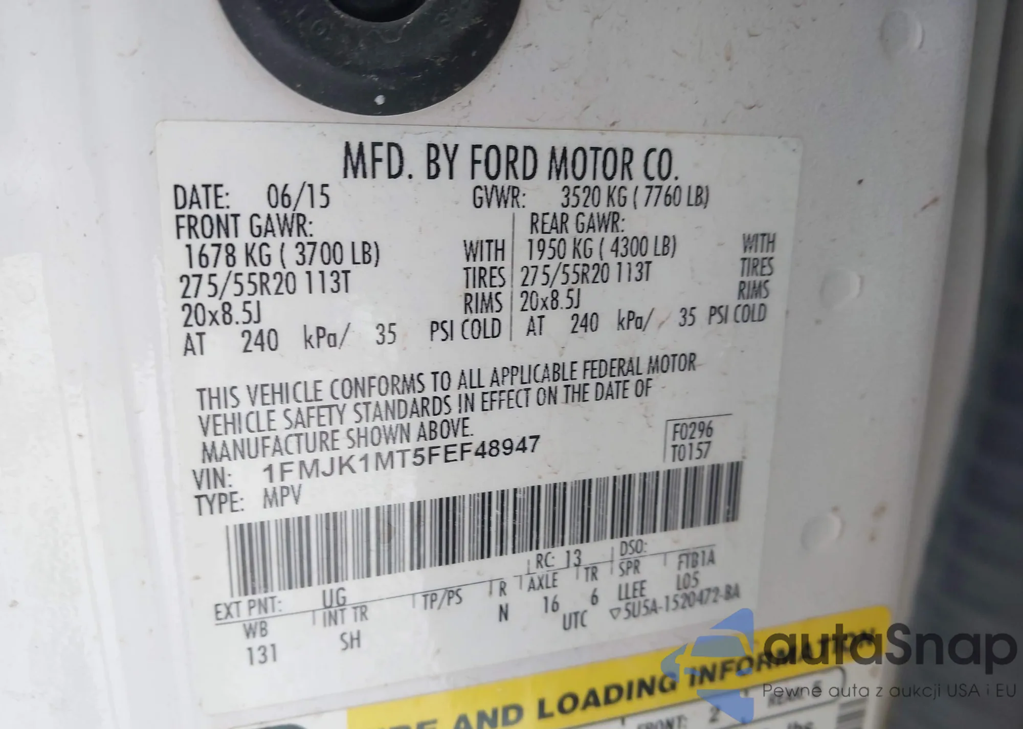 LOT: 44135917 VIN: 1FMJK1MT5FEF48947