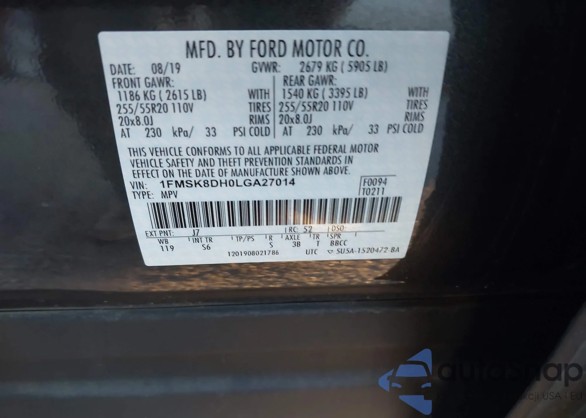 • VIN 1FMSK8DH0LGA27014