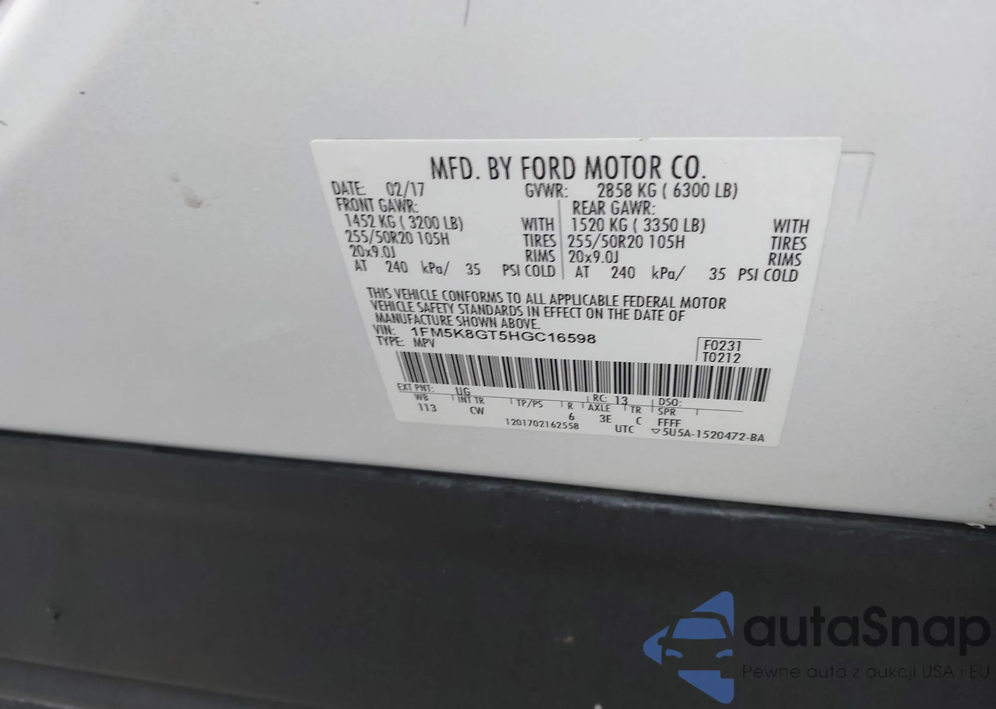LOT: 44324685 VIN: 1FM5K8GT5HGC16598