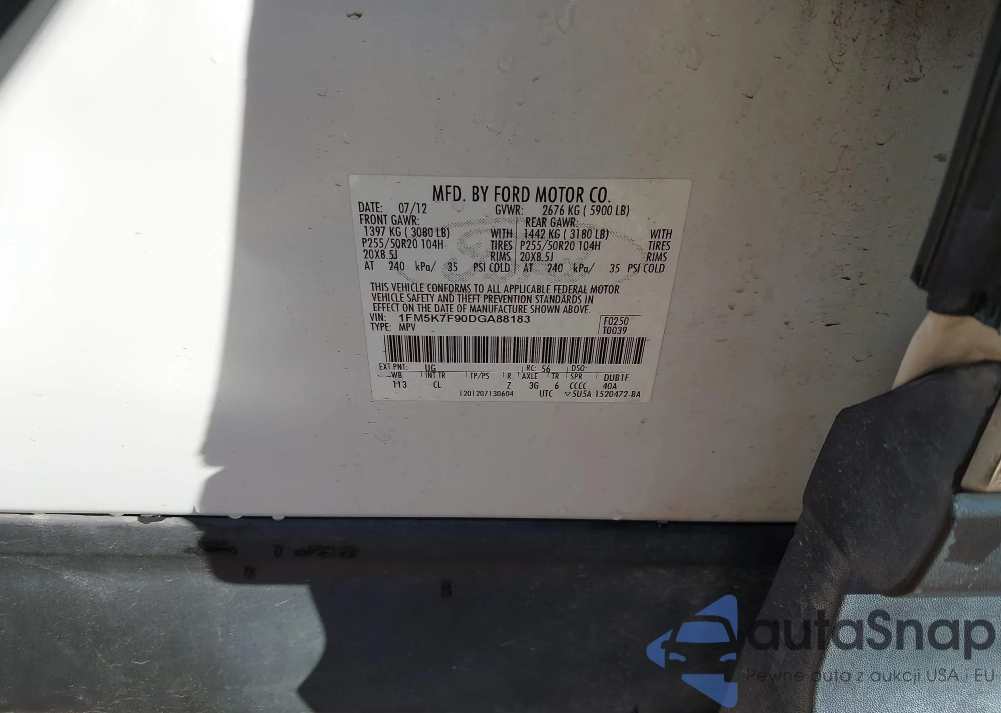 LOT: 44147696 VIN: 1FM5K7F90DGA88183