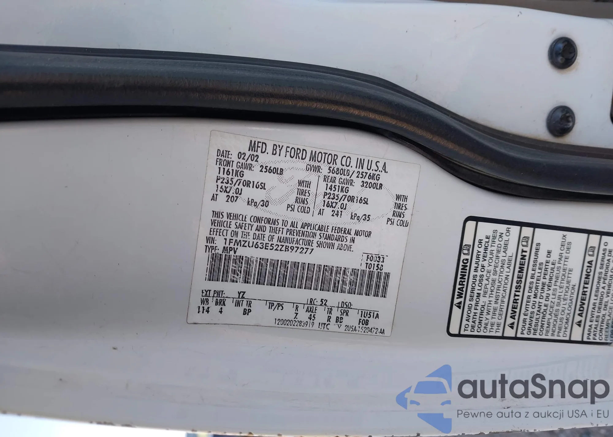 • VIN 1FMZU63E52ZB97277