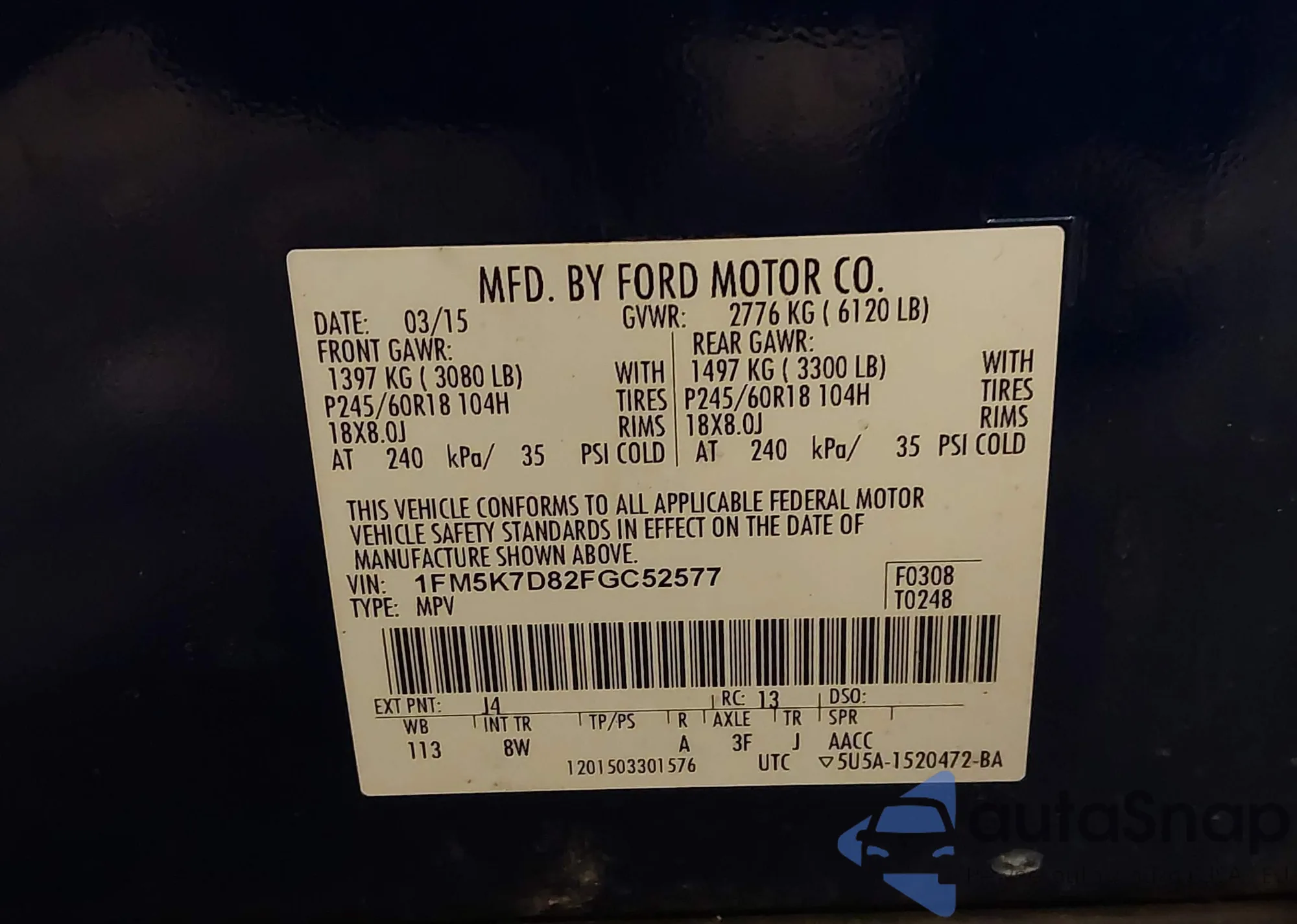 • VIN 1FM5K7D82FGC52577