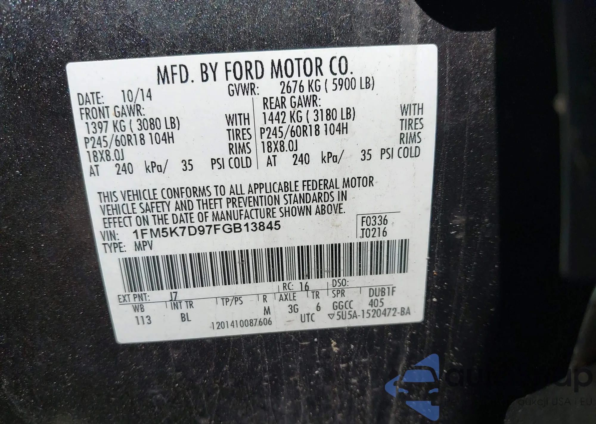 LOT: 43046583 VIN: 1FM5K7D97FGB13845