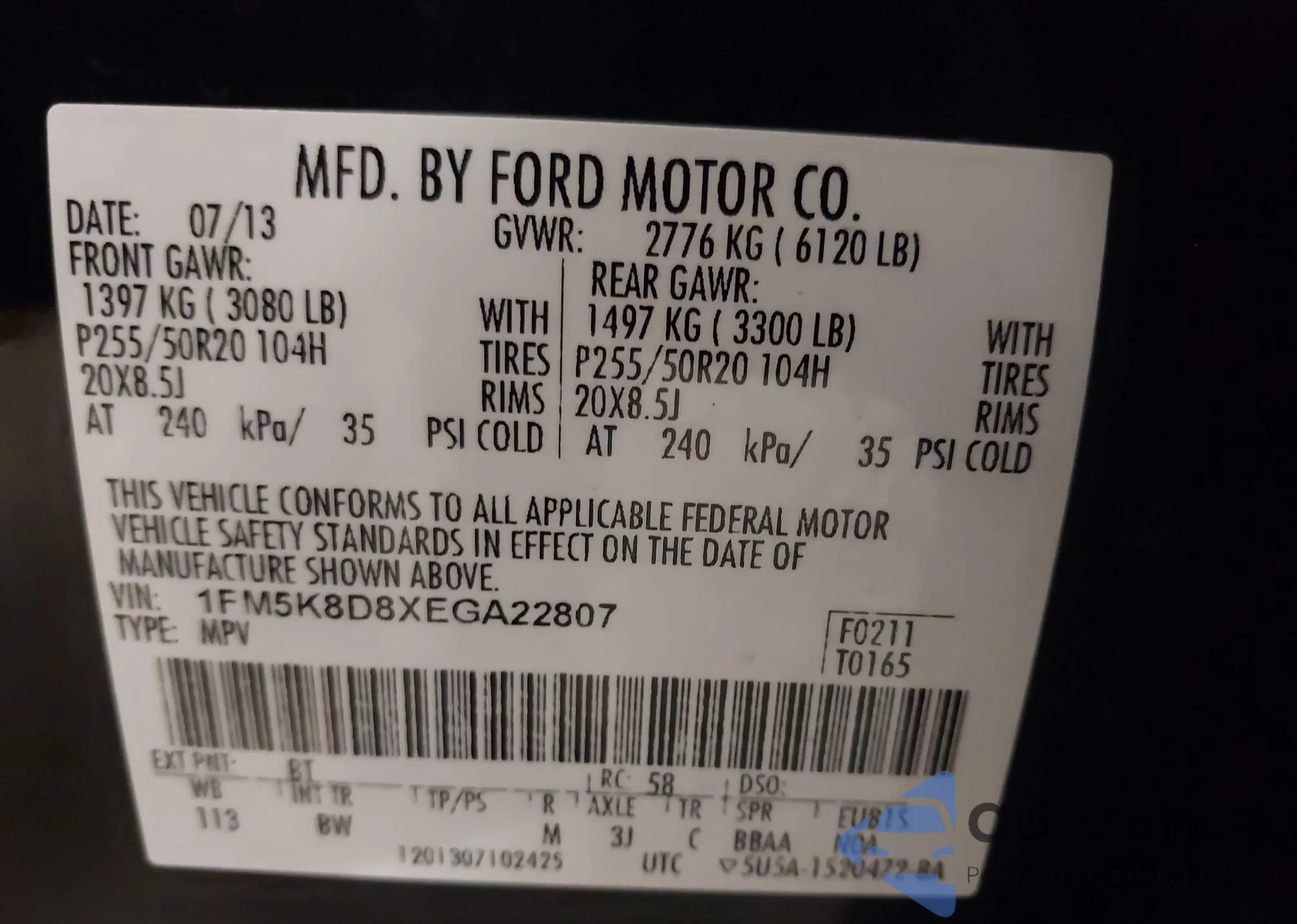 • VIN 1FM5K8D8XEGA22807