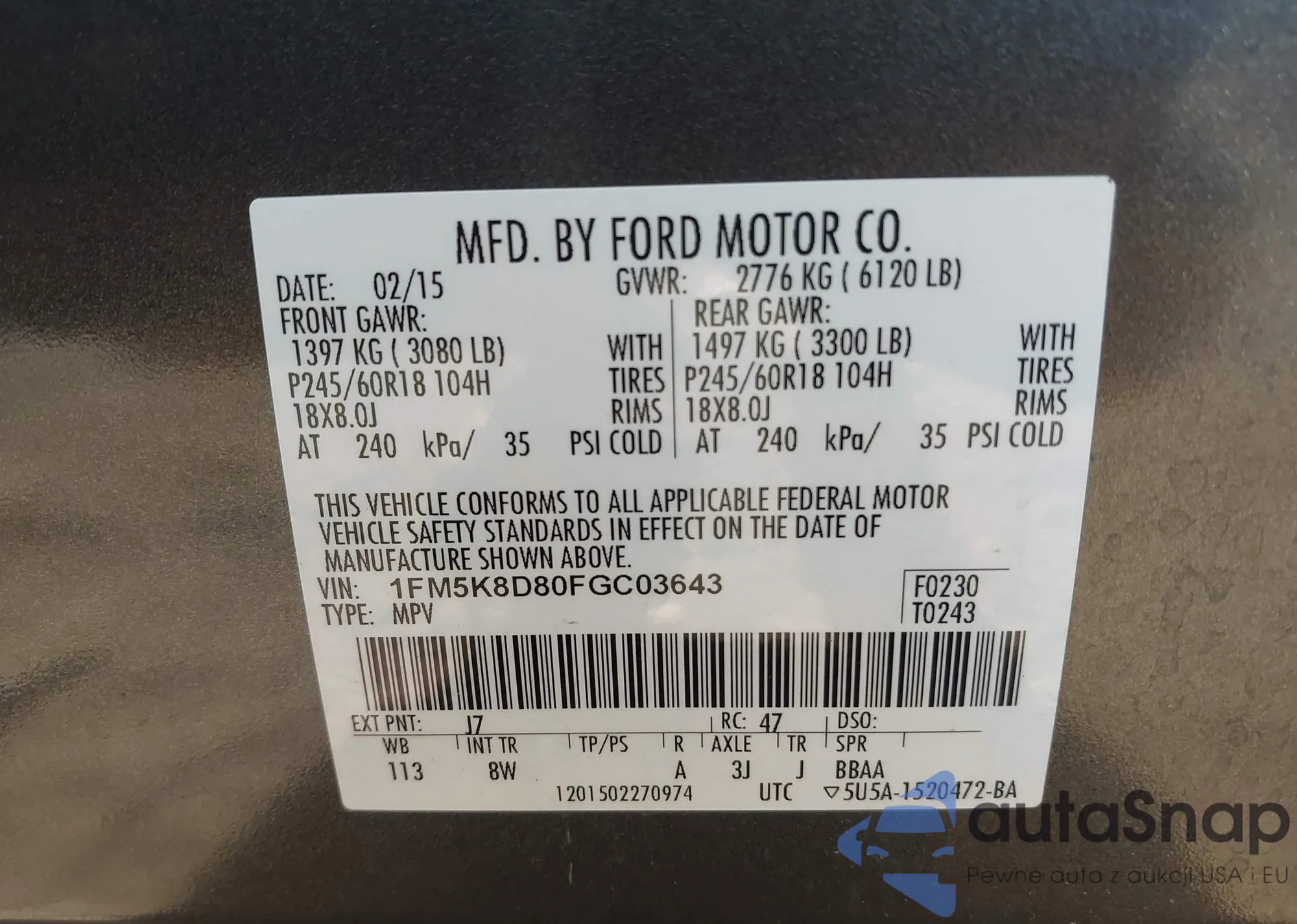 • VIN 1FM5K8D80FGC03643