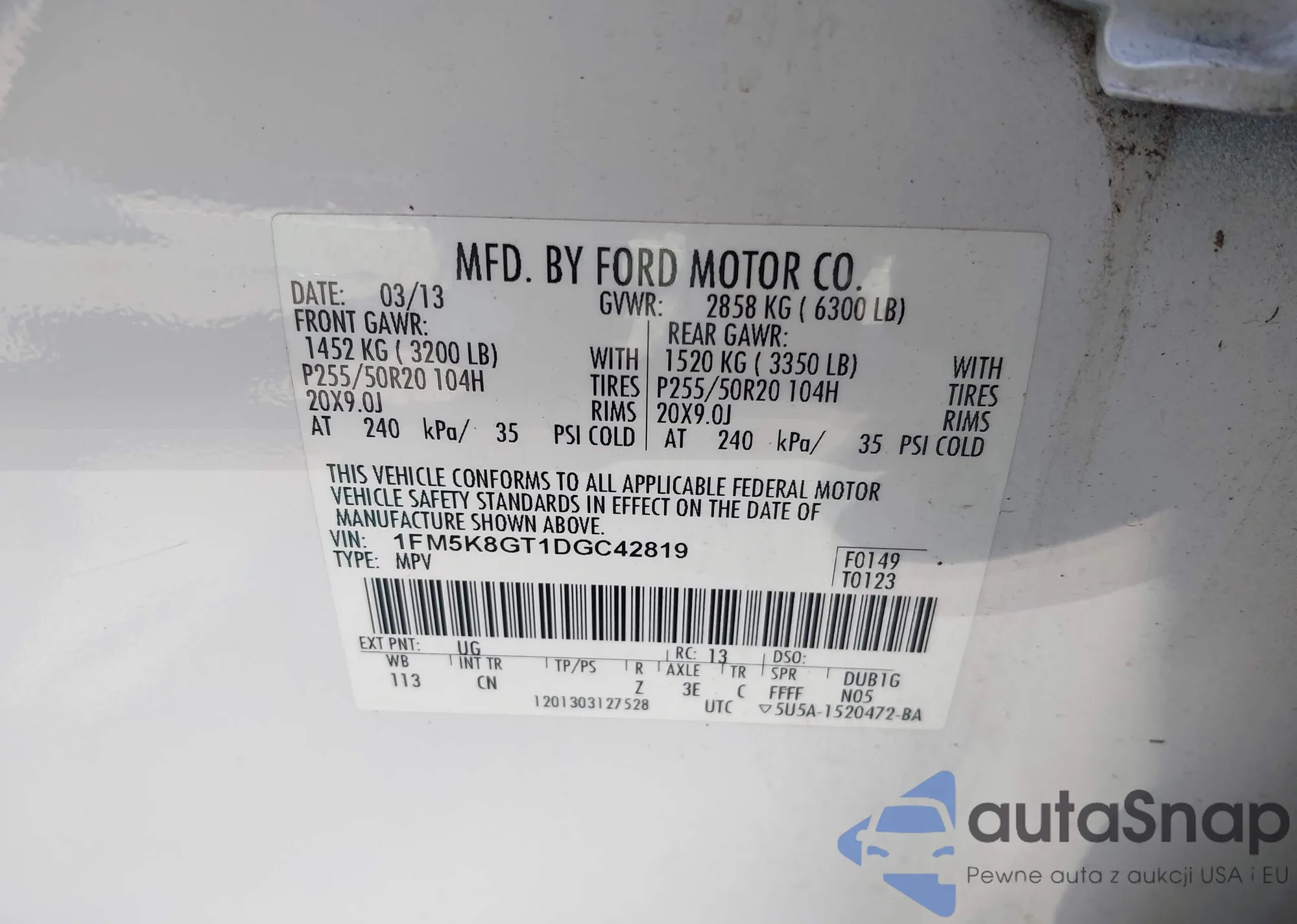 • VIN 1FM5K8GT1DGC42819